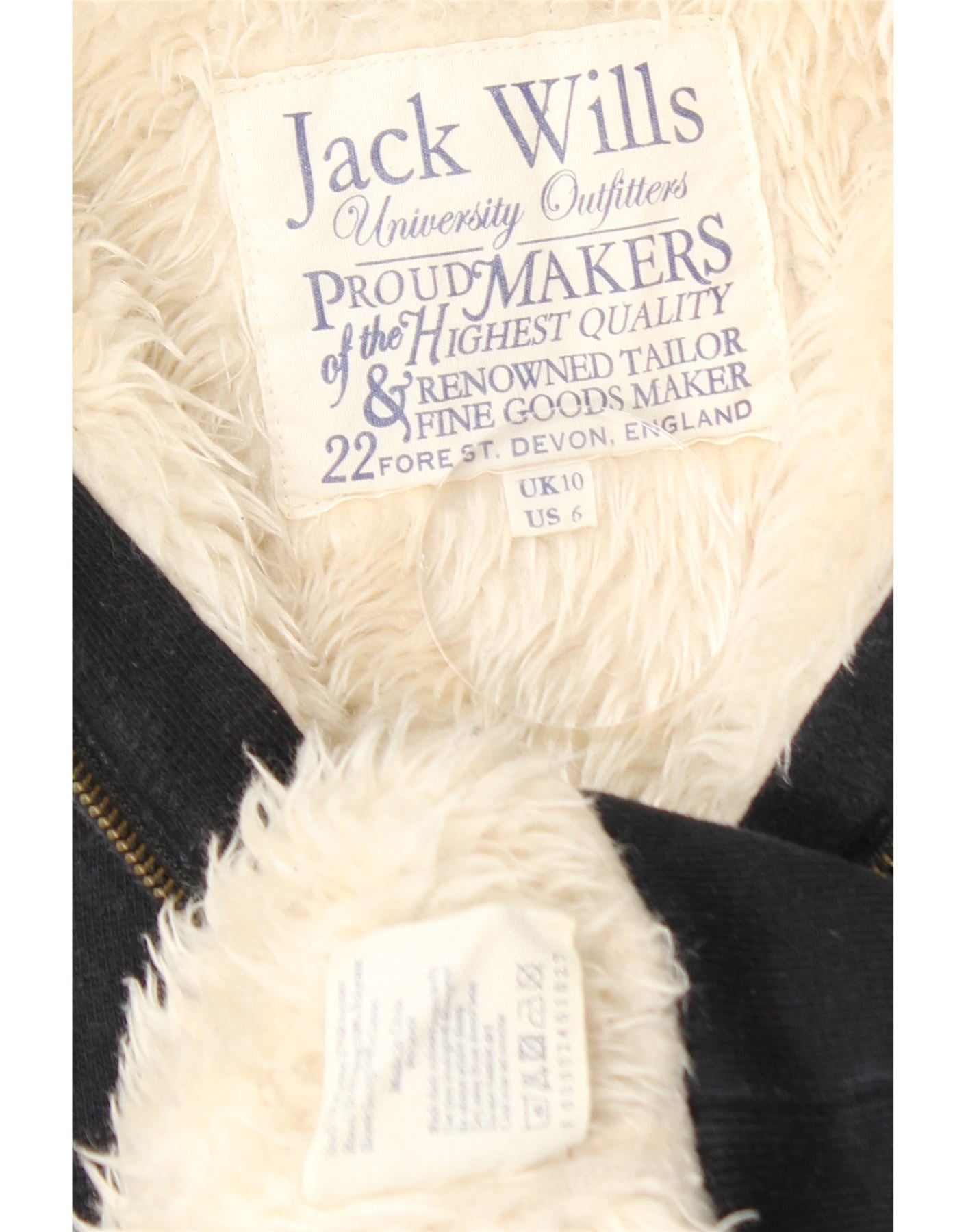 JACK WILLS Womens Graphic Sherpa Zip Hoodie Sweater UK 10 Small Black