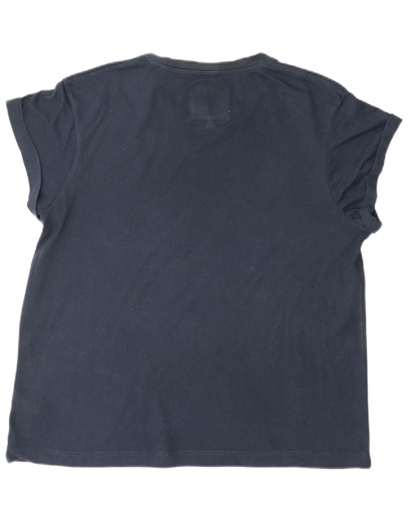 JACK WILLS Womens Graphic T-Shirt Top UK 14 Large Navy Blue Cotton