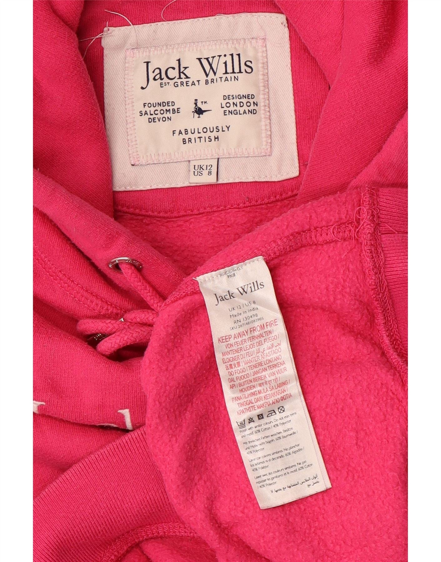 JACK WILLS Womens Oversized Crop Graphic Hoodie Jumper UK 12 Medium Pink