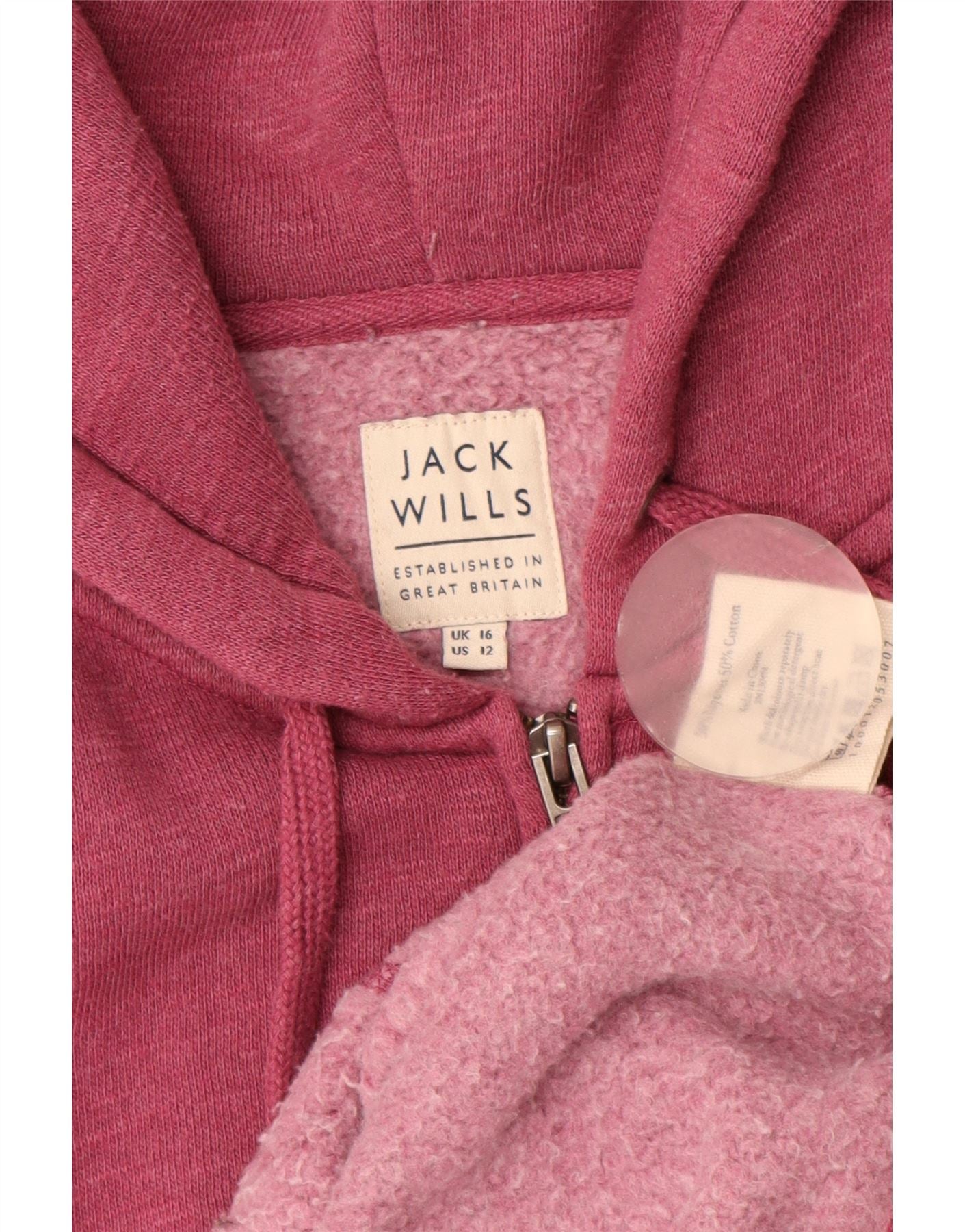 JACK WILLS Womens Zip Hoodie Sweater UK 16 Large Burgundy Flecked