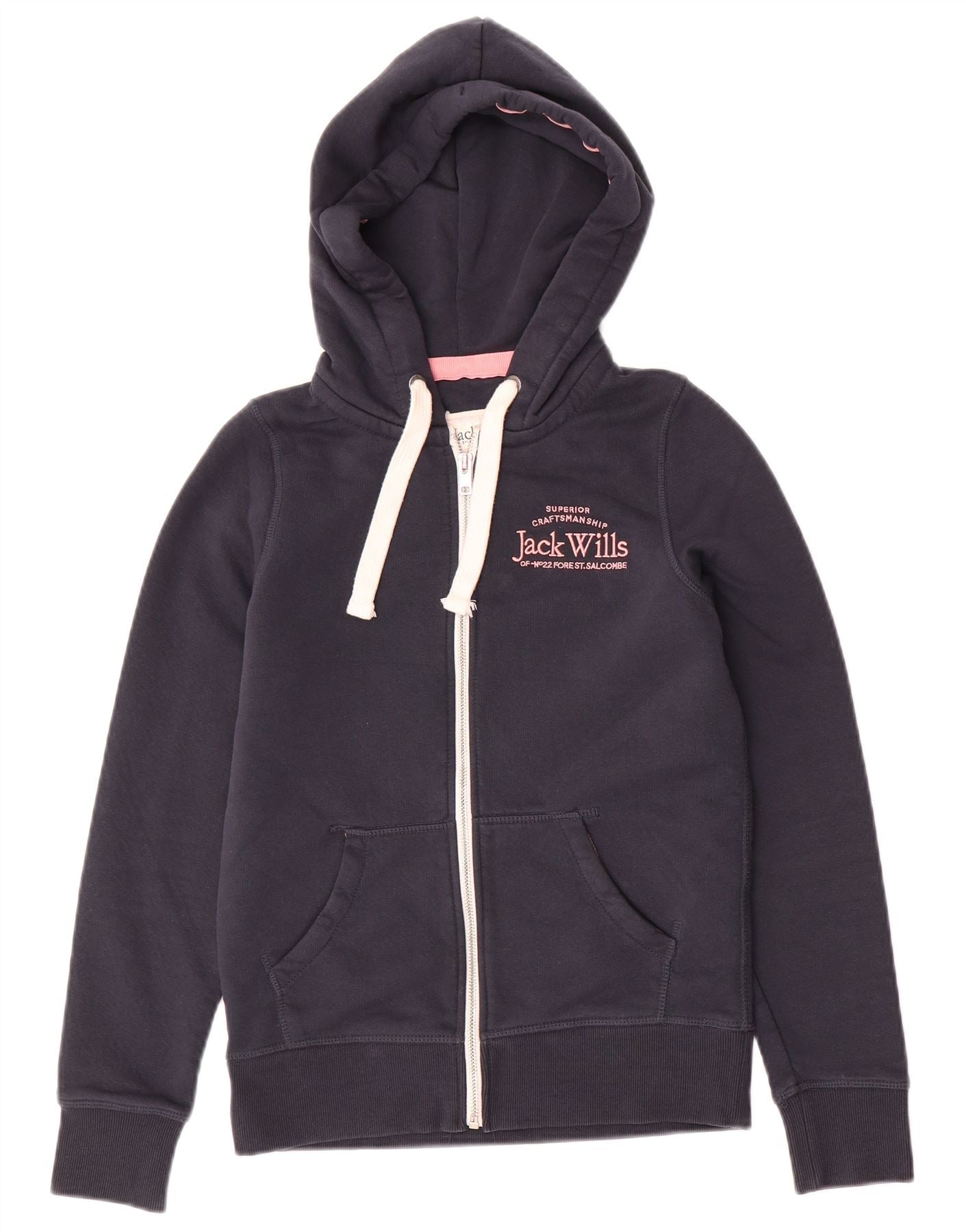 JACK WILLS Womens Zip Hoodie Sweater UK 4 XS Navy Blue Cotton