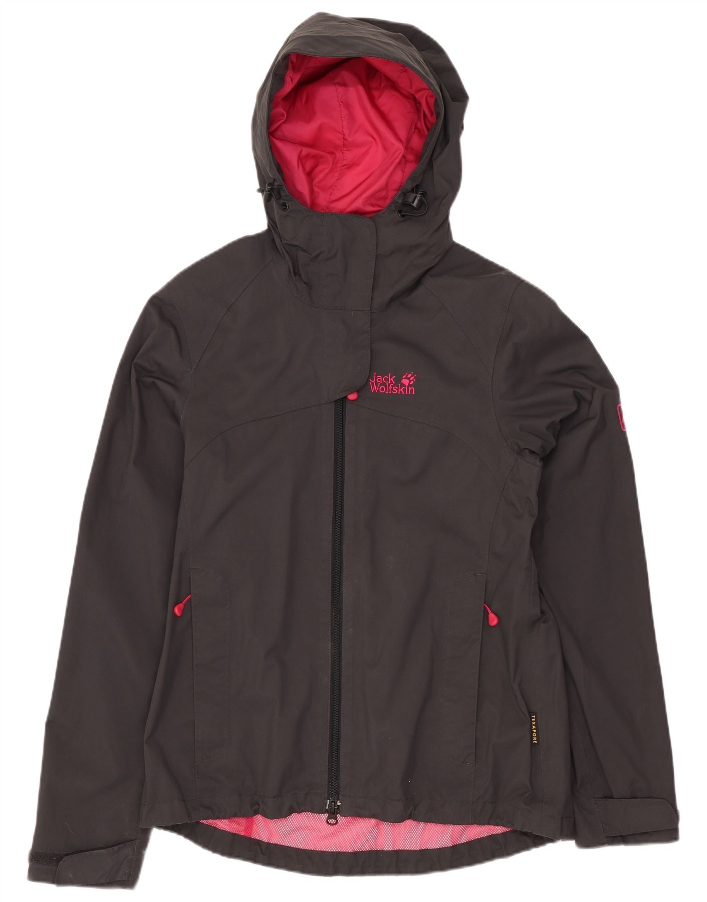 Jack Wolfskin Womens Hooded Rain Jacket UK 8/10 Small Grey Polyamide