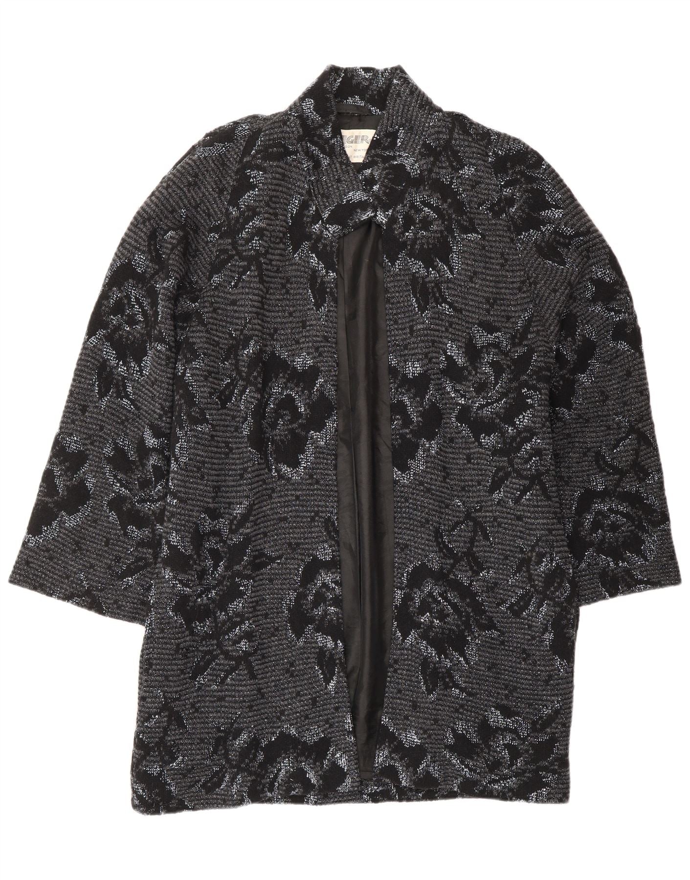 JAEGER Womens Oversized Open Overcoat UK 8 Small Grey Floral Wool