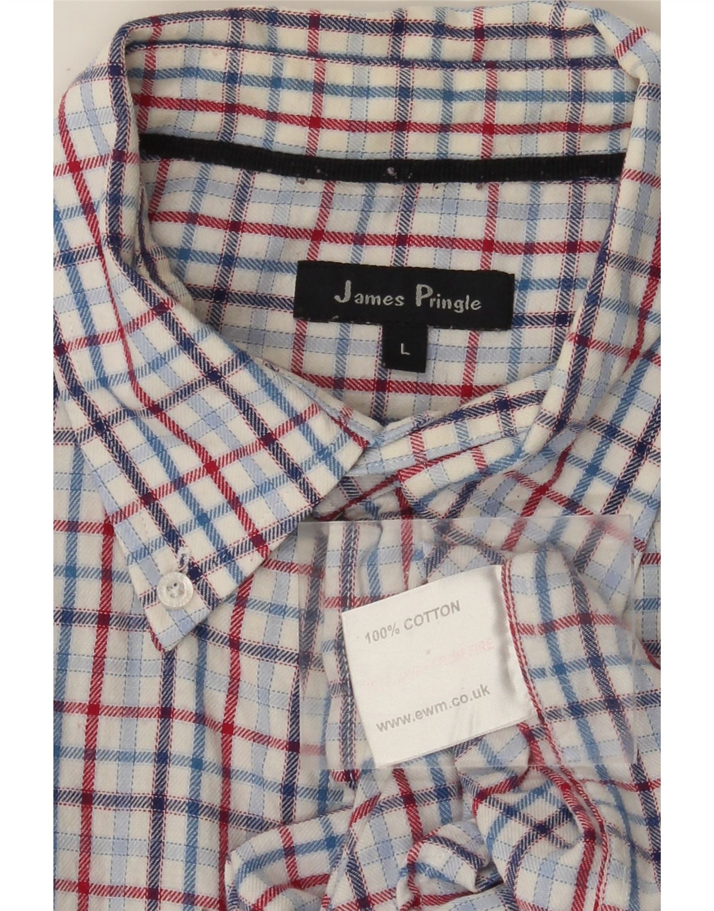 JAMES PRINGLE Mens Flannel Shirt Large Blue Check Cotton