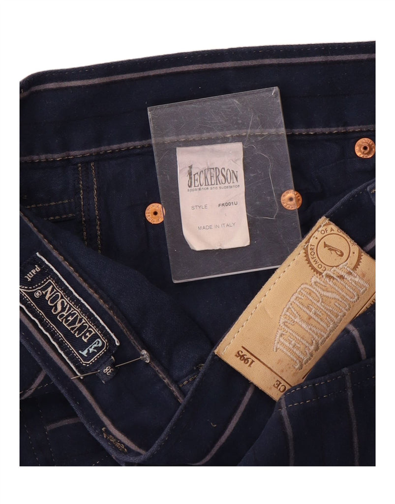 JECKERSON Mens Straight Casual Trousers W38 L32 Navy Blue Striped Cotton