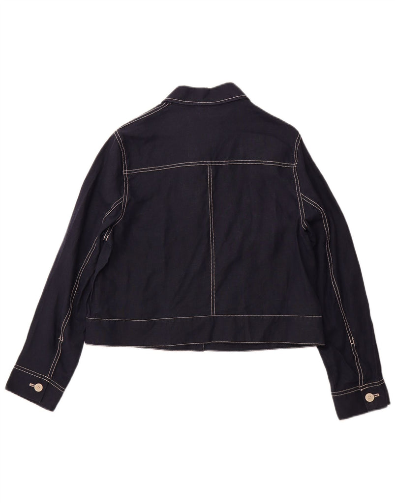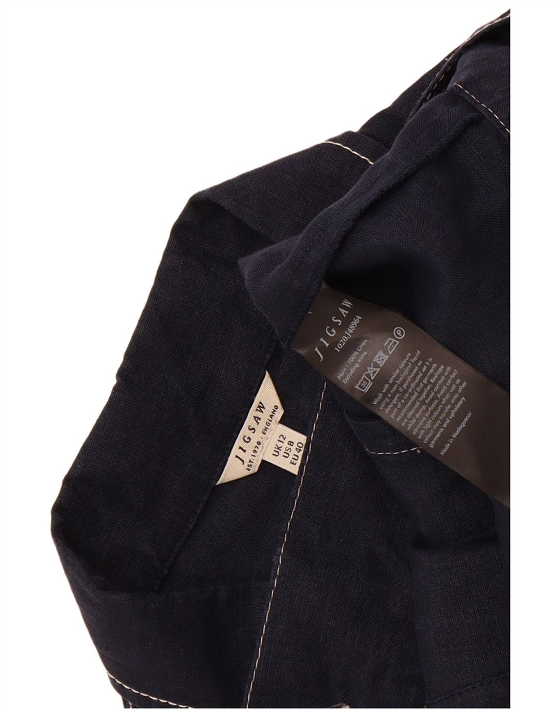 JIGSAW Womens Bomber Jacket UK 12 Medium Navy Blue Linen