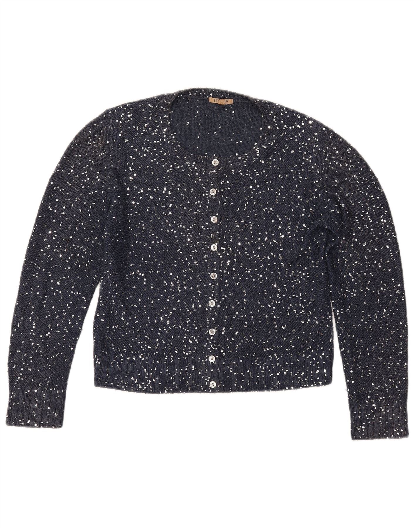JIGSAW Womens Crop Cardigan Sweater UK 12 Medium Navy Blue Polyester