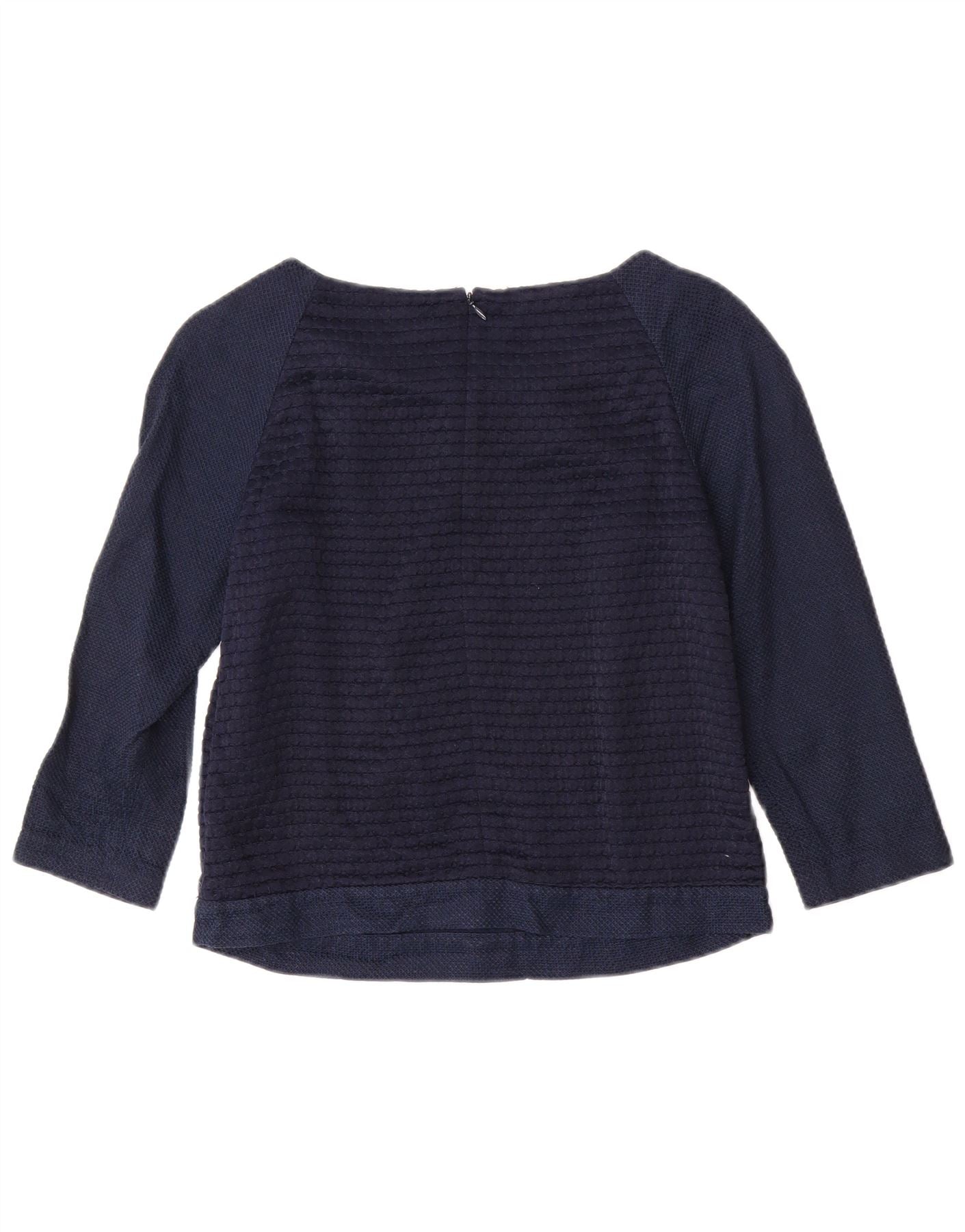 JIGSAW Womens Crop Top 3/4 Sleeve UK 8 Small Navy Blue Cotton
