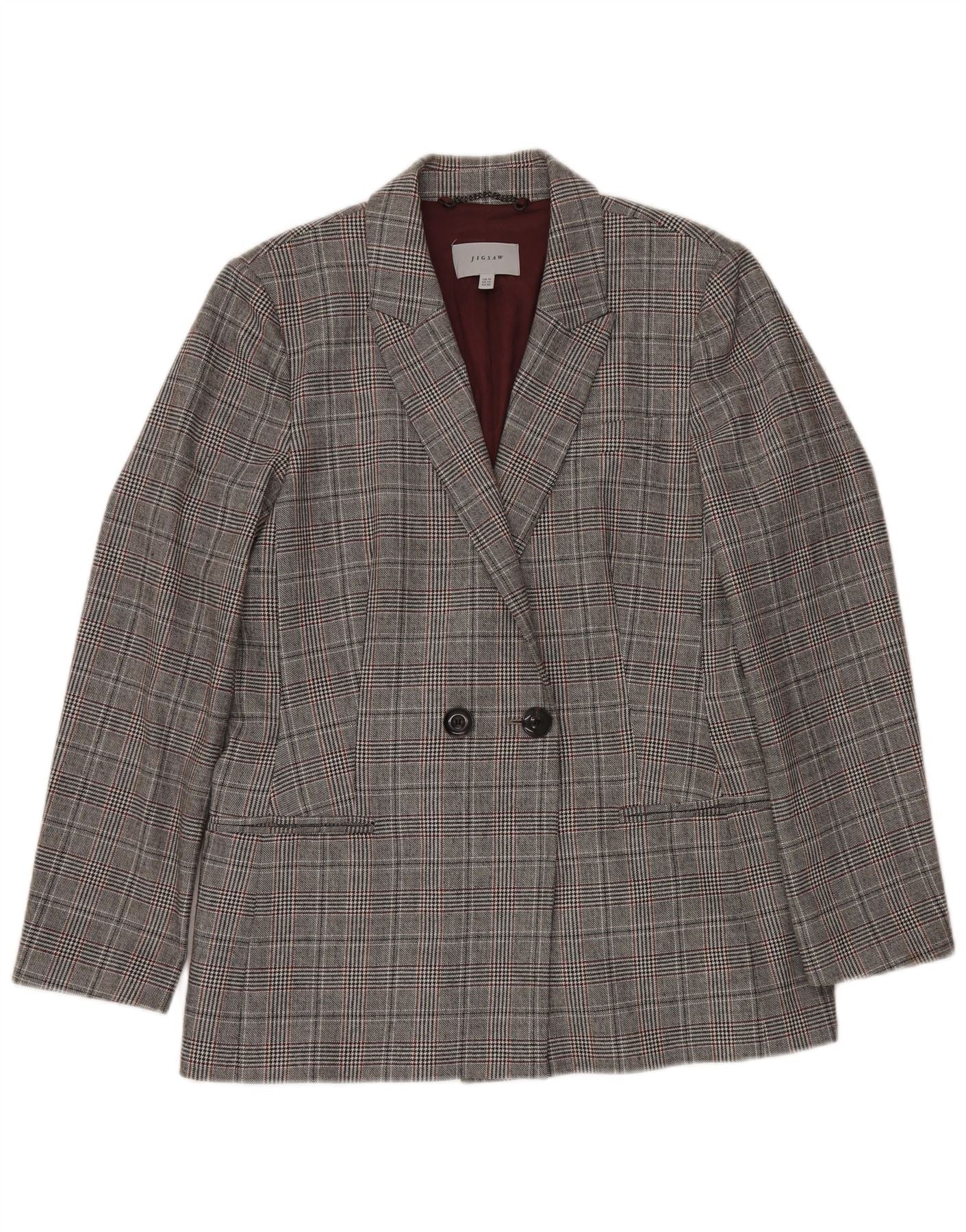 JIGSAW Womens Double Breasted Blazer Jacket UK 14 Large Grey Houndstooth