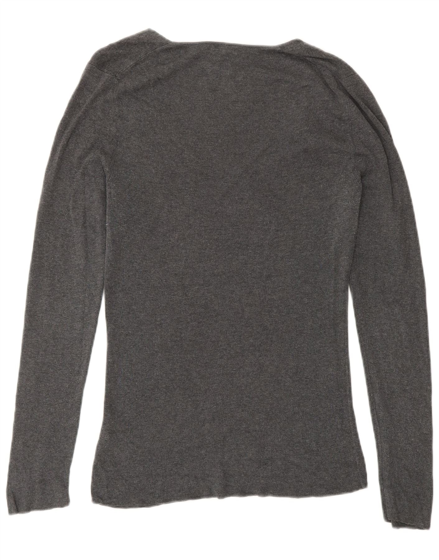 JIGSAW Womens V-Neck Jumper Sweater UK 12 Medium Grey Cotton