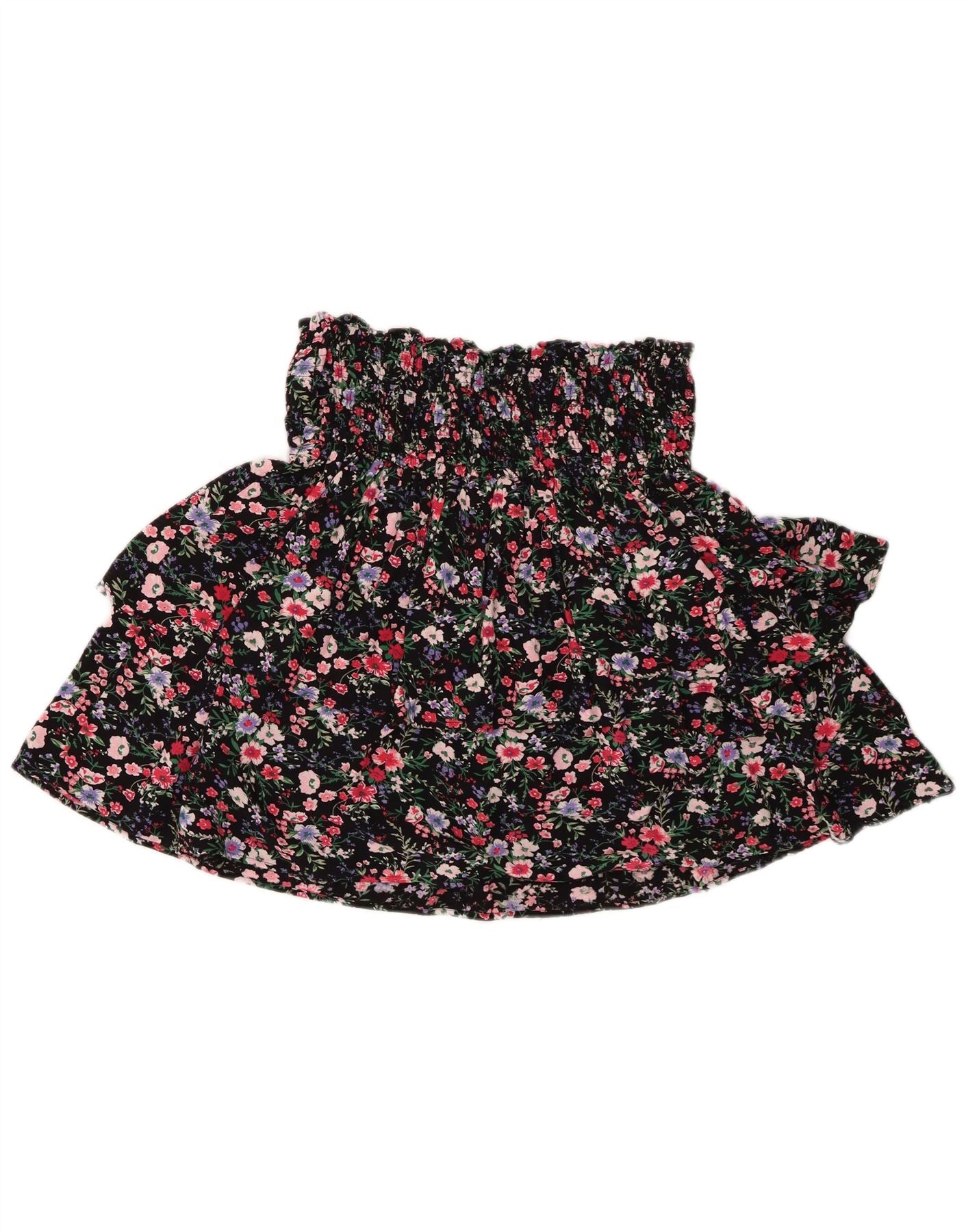 JOE BROWNS Womens Ruffle Skirt UK 12 Medium W30 Black Floral Viscose