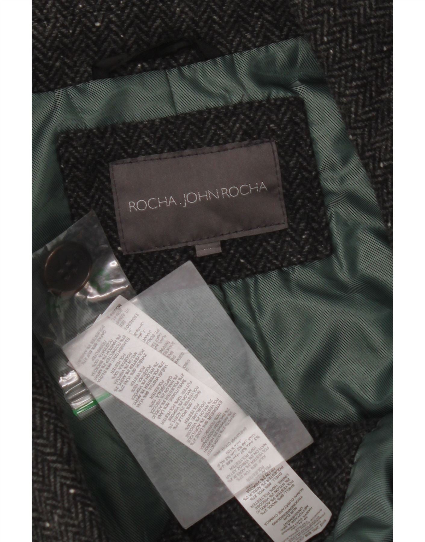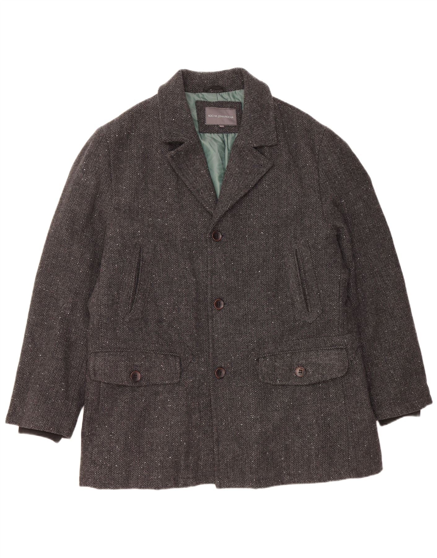 JOHN ROCHA Mens Overcoat UK 42 XL Grey Herringbone Wool