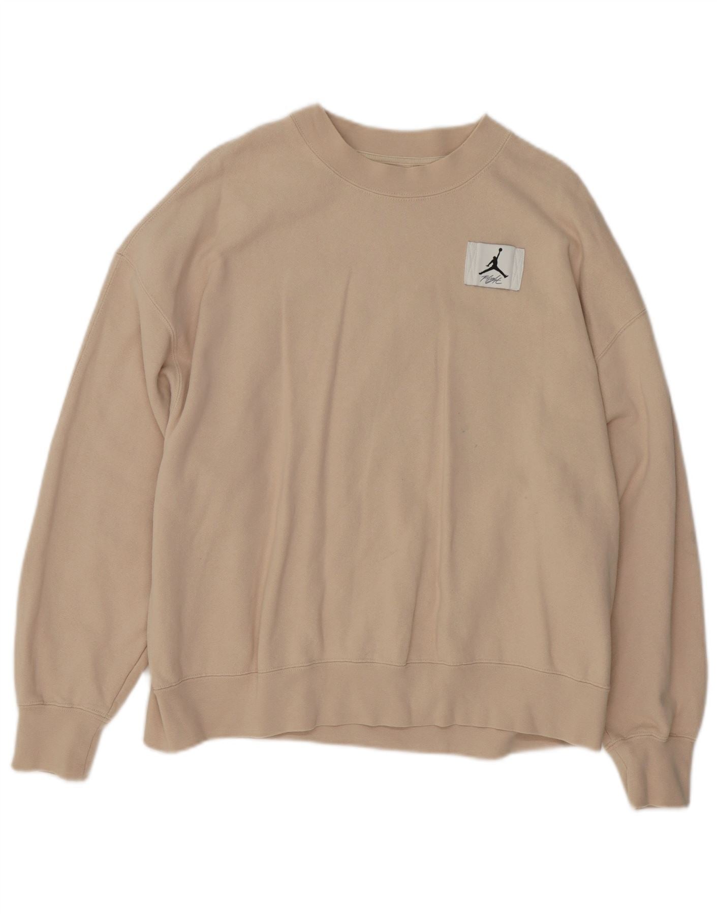 JORDAN Womens Oversized Sweatshirt Jumper UK 14 Medium Beige Cotton