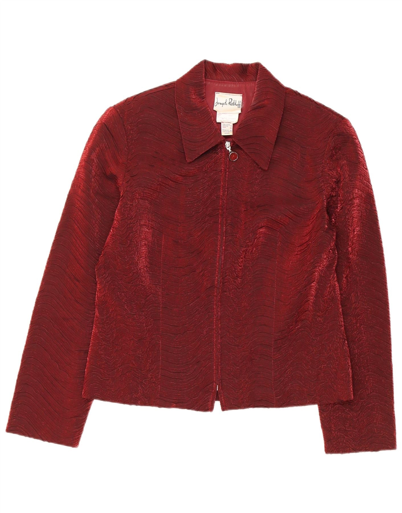 JOSEPH RIBKOFF Womens Crop Blazer Jacket UK 12 Medium Burgundy Rayon