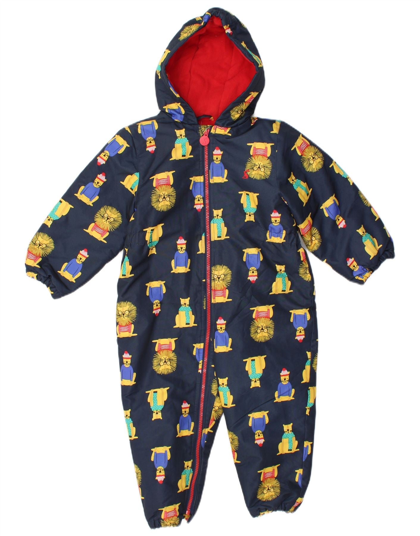 JOULES Boys Outside Hooded Jumpsuit 2-3 Years Navy Blue Animal Print