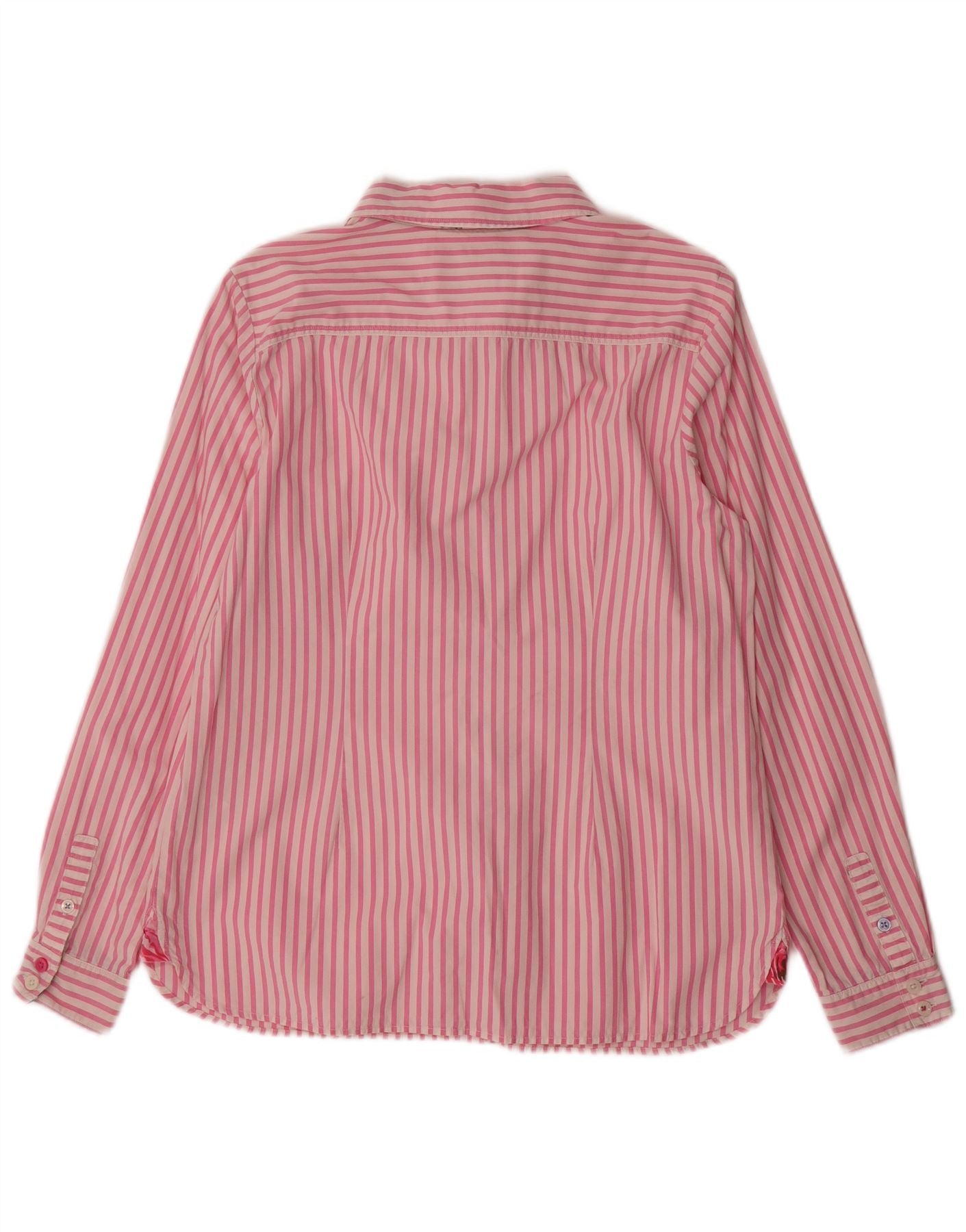 JOULES Womens Shirt UK 14 Large Pink Pinstripe Cotton