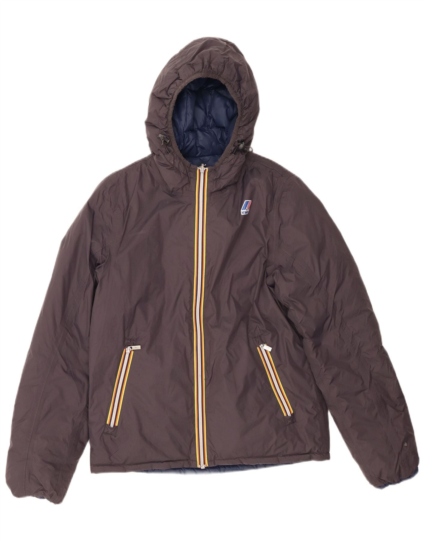 K-WAY Boys Hooded Reversible Padded Jacket 11-12 Years Small Grey