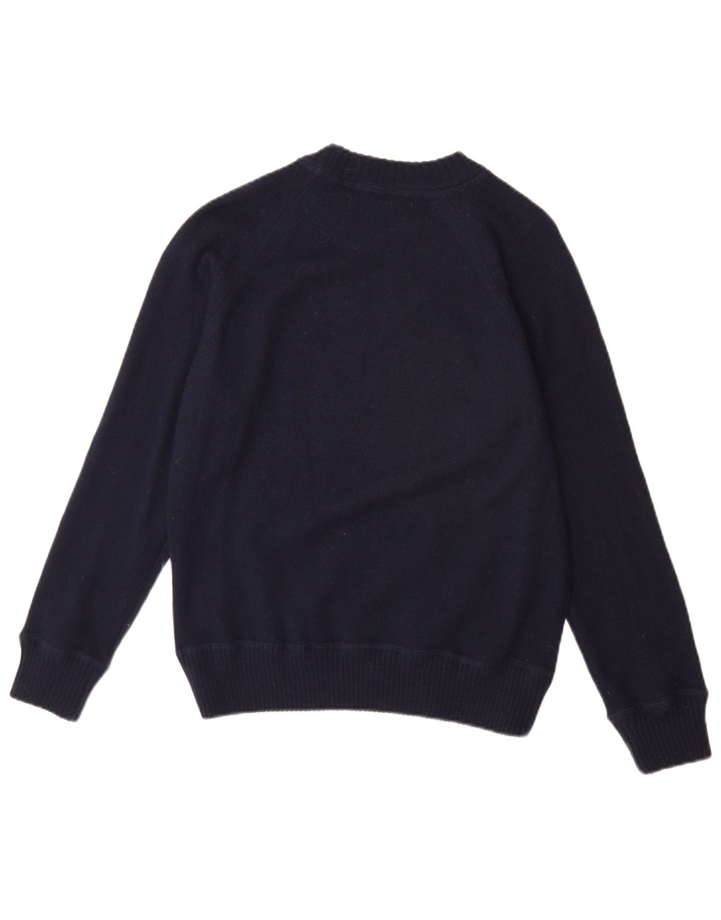 K-WAY Womens Graphic Boat Neck Jumper Sweater UK 12 Medium Navy Blue Wool