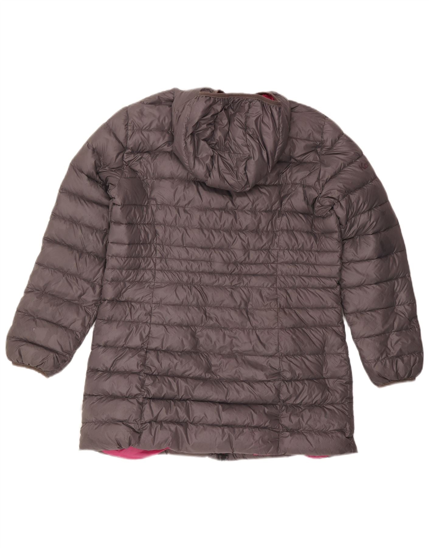 • AI Description: This Kangaroos womens padded jacket offers warmth and style in a versatile grey hue. Crafted from a blended fabric, its quilted design provides a cosy texture. The jacket features a practical hood with a vibrant pink lining and a high neck for added protection. A full zip closure ensures easy wear, while long sleeves and a regular fit offer comfortable layering. Subtle branding adds a signature touch.