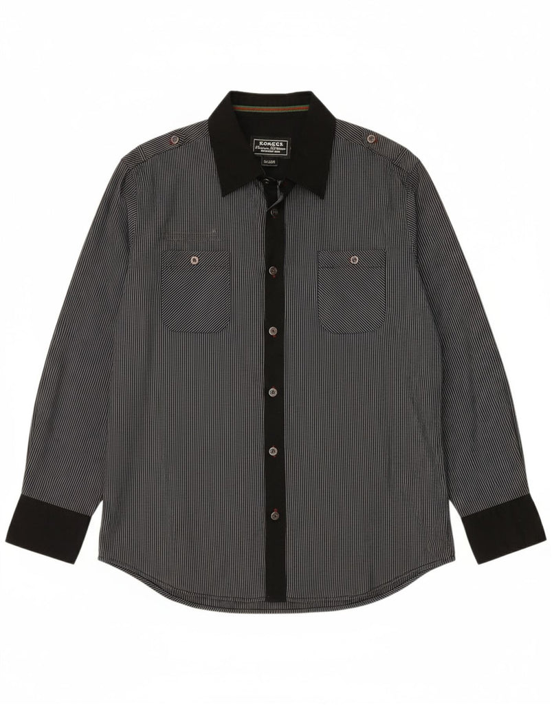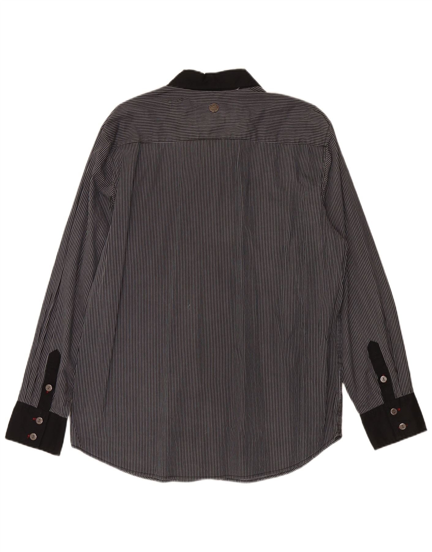 KANGOL Mens Military Shirt XL Navy Blue Pinstripe Cotton