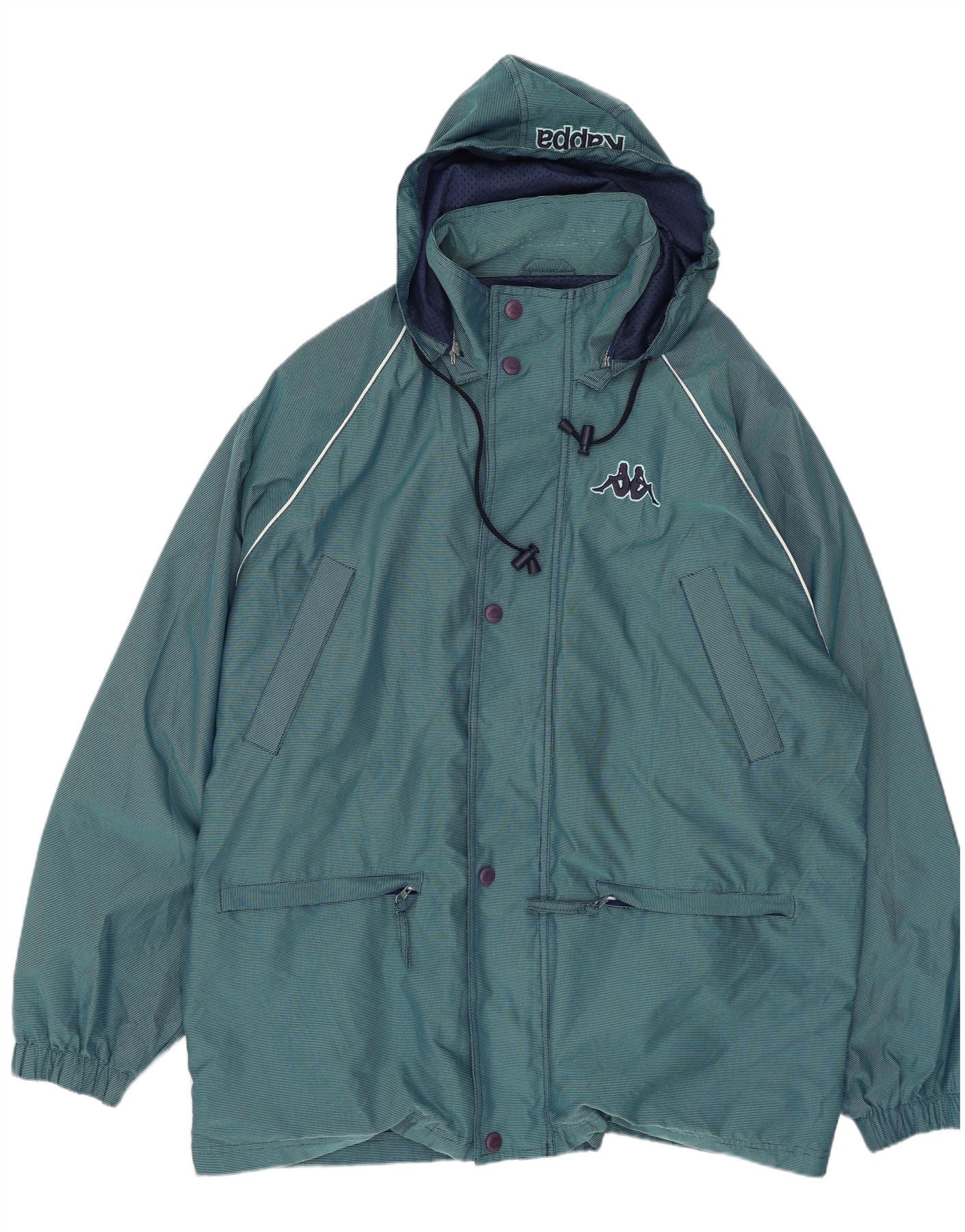 KAPPA Mens Graphic Hooded Rain Jacket UK 42 XL Blue Nylon