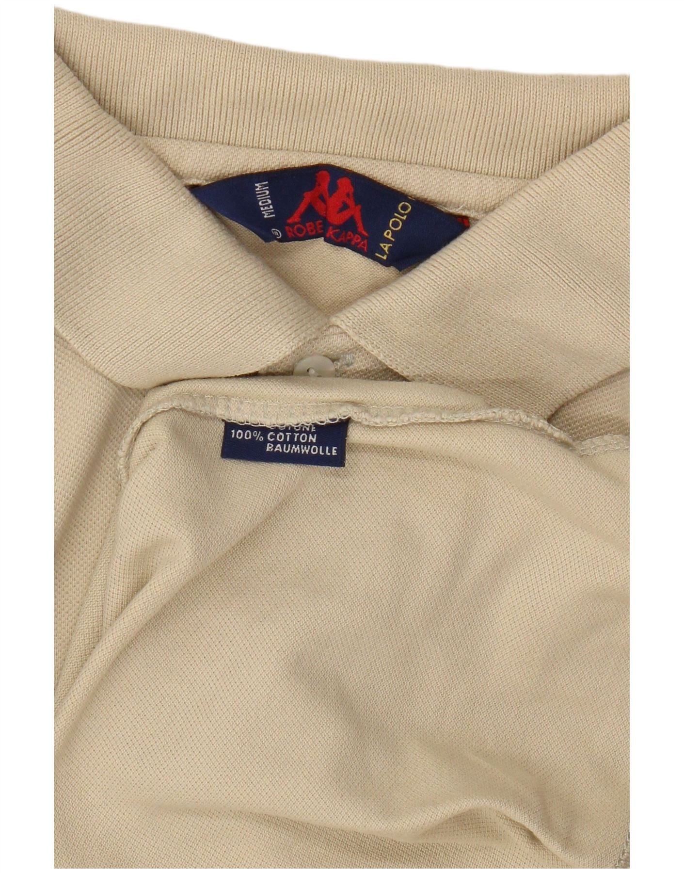 Kappa Mens Long Sleeve Polo Shirt Medium Beige Cotton