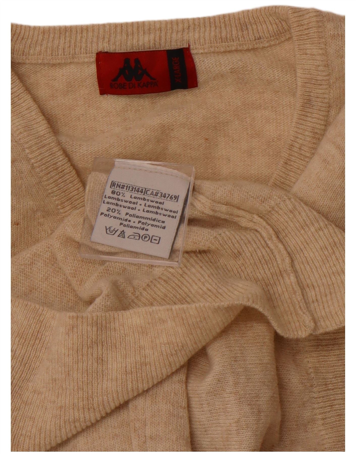 KAPPA Mens V-Neck Jumper Sweater XL Beige Lambswool