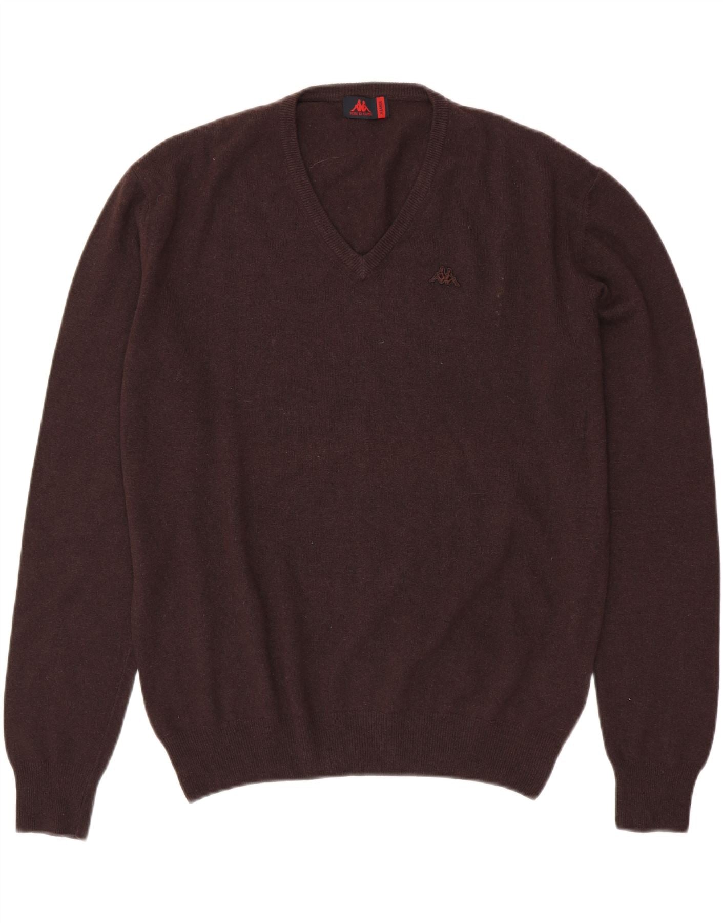 KAPPA Mens V-Neck Jumper Sweater XL Brown Wool