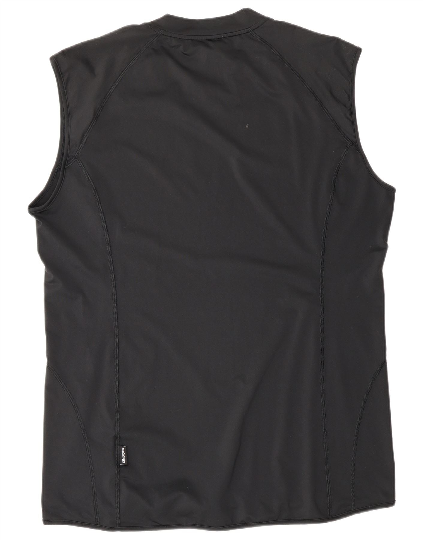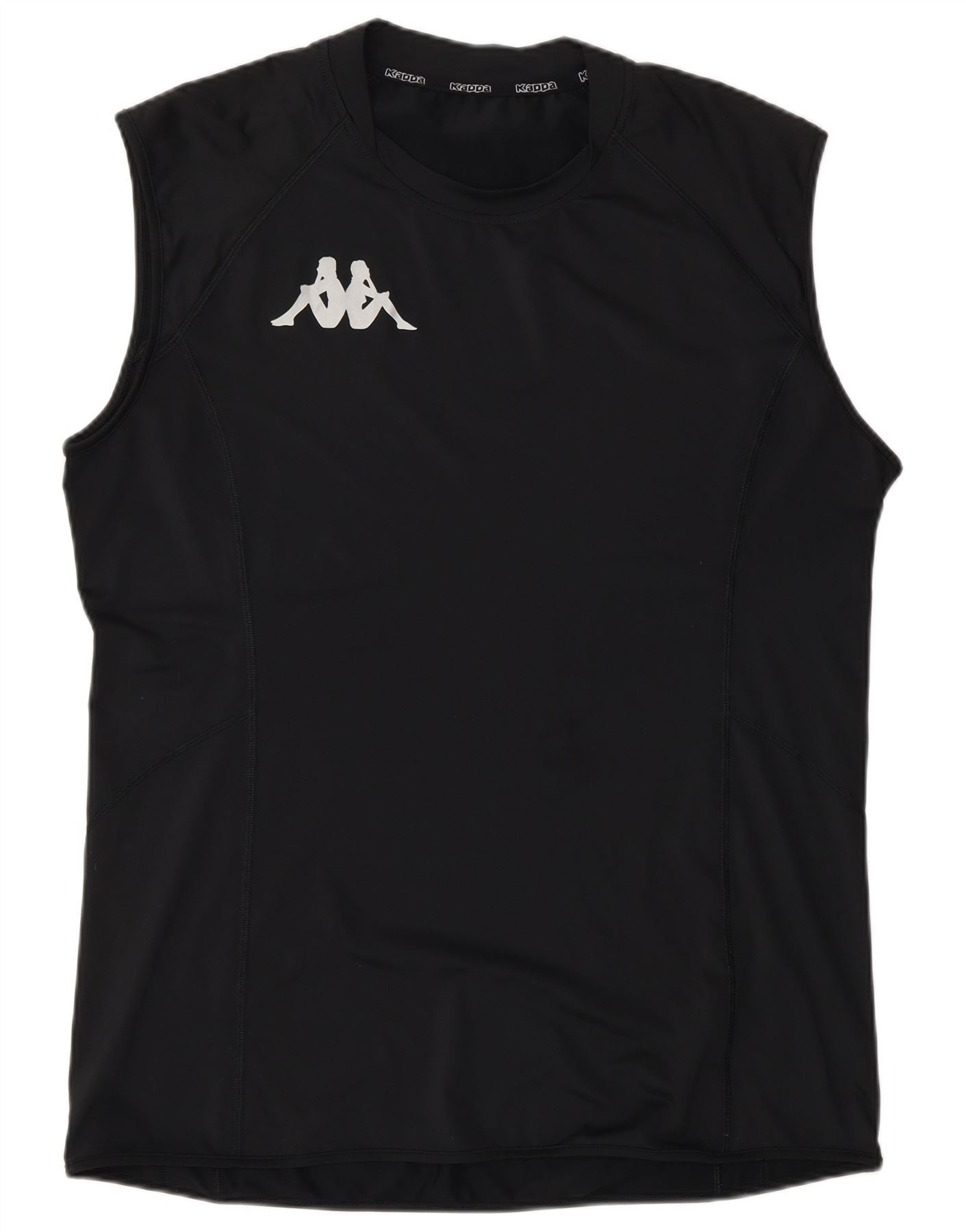- AI Description: This Kappa mens vest top is crafted from a lightweight black blended fabric, offering a smooth and breathable feel. It features a classic round neck and a sleeveless cut for unrestricted movement. The regular fit ensures comfort during sports or casual wear. A prominent white Kappa logo is displayed on the chest, adding a signature athletic detail. This pullover design is both practical and stylish.