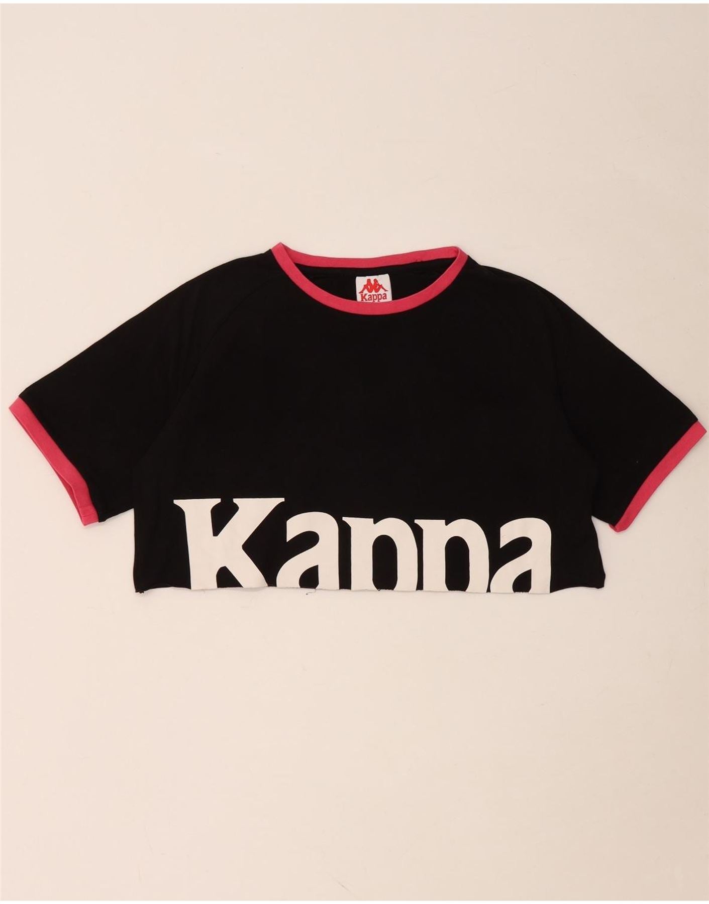 KAPPA Womens Crop Oversized Graphic T-Shirt Top UK 10 Small Black Cotton