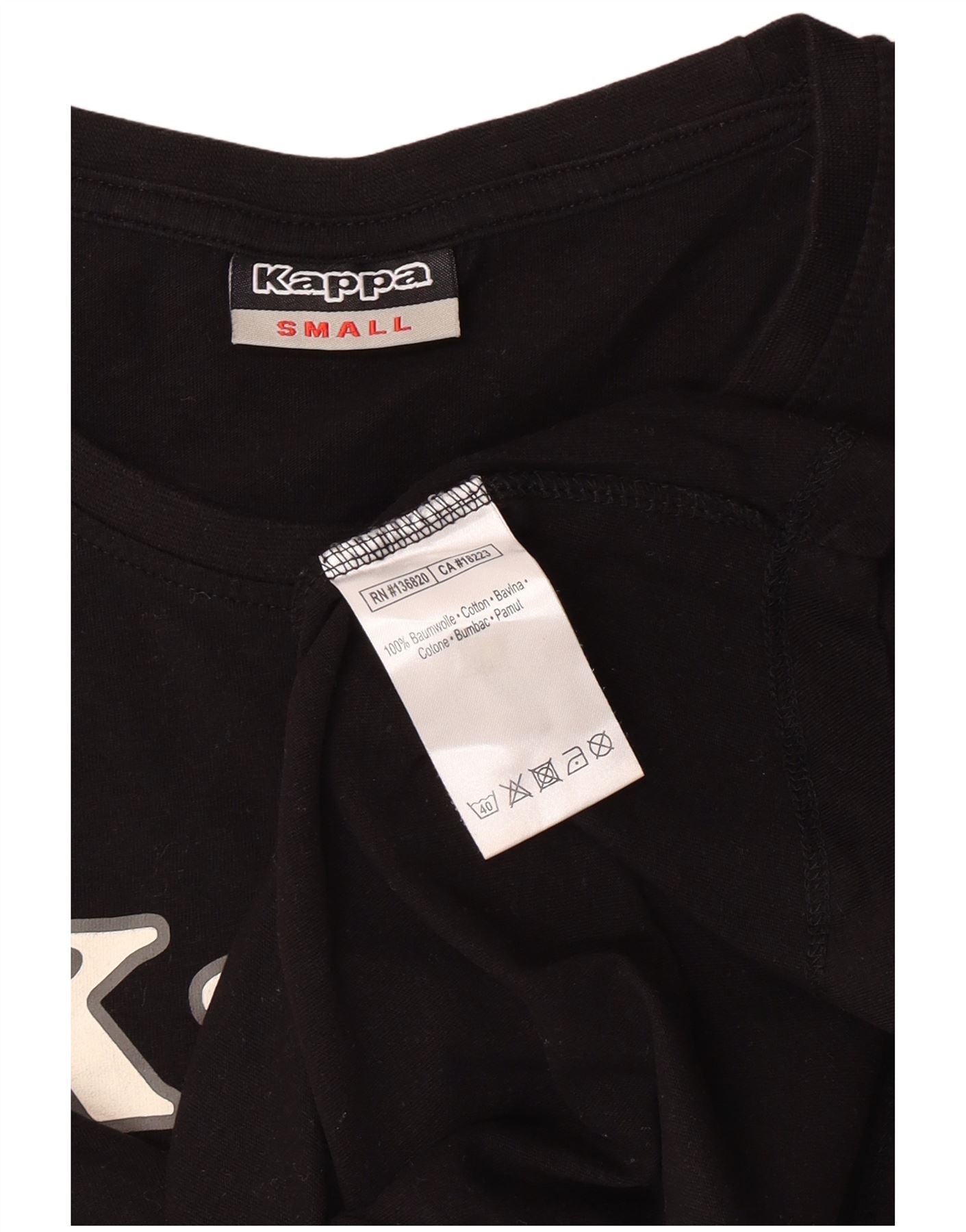 KAPPA Womens Graphic T-Shirt Top UK 10 Small Black Cotton
