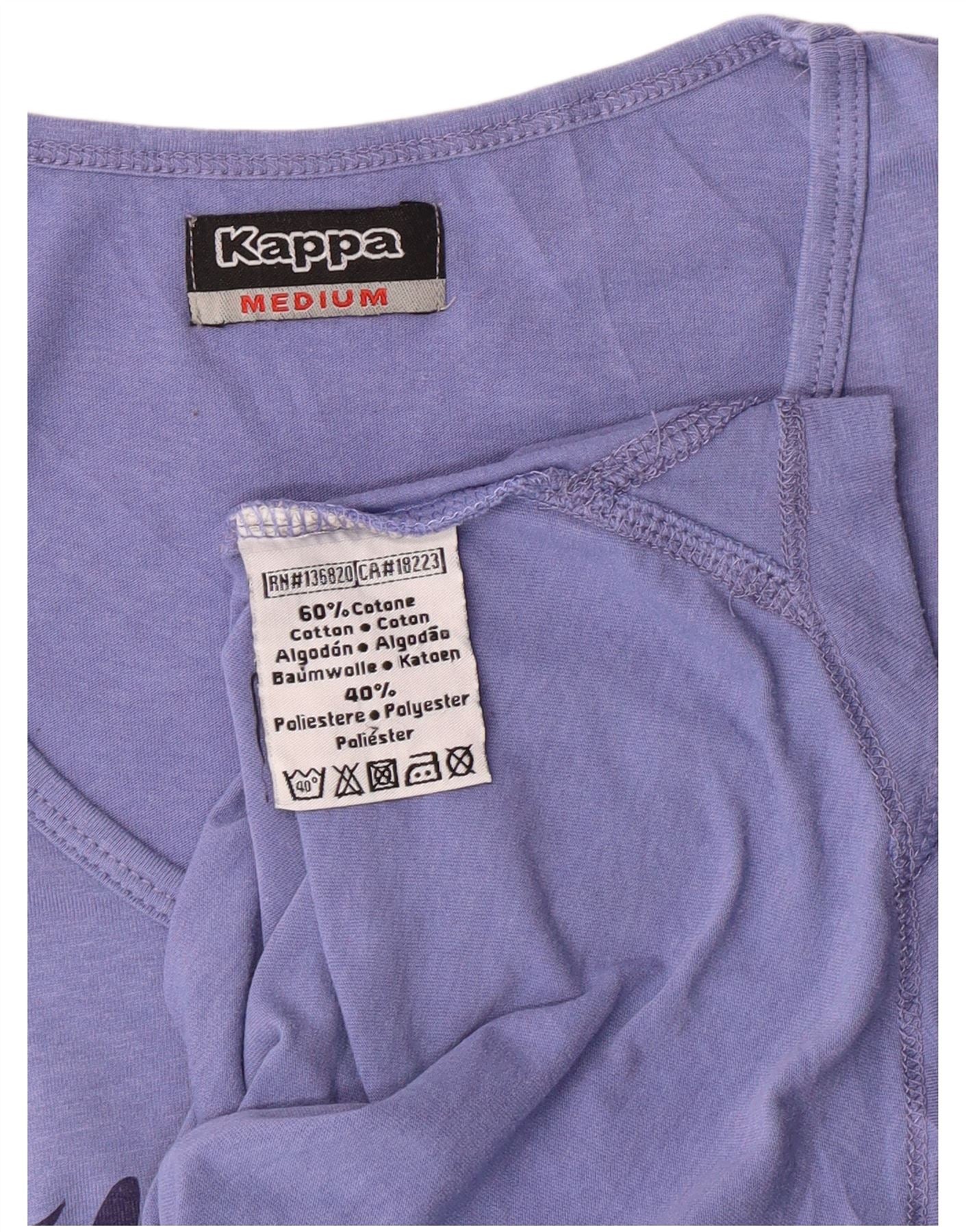KAPPA Womens Graphic T-Shirt Top UK 12 Medium Blue Cotton