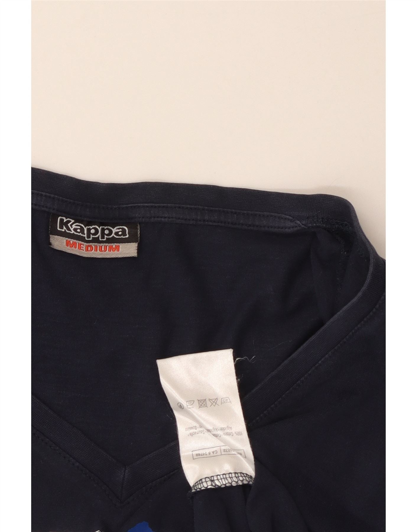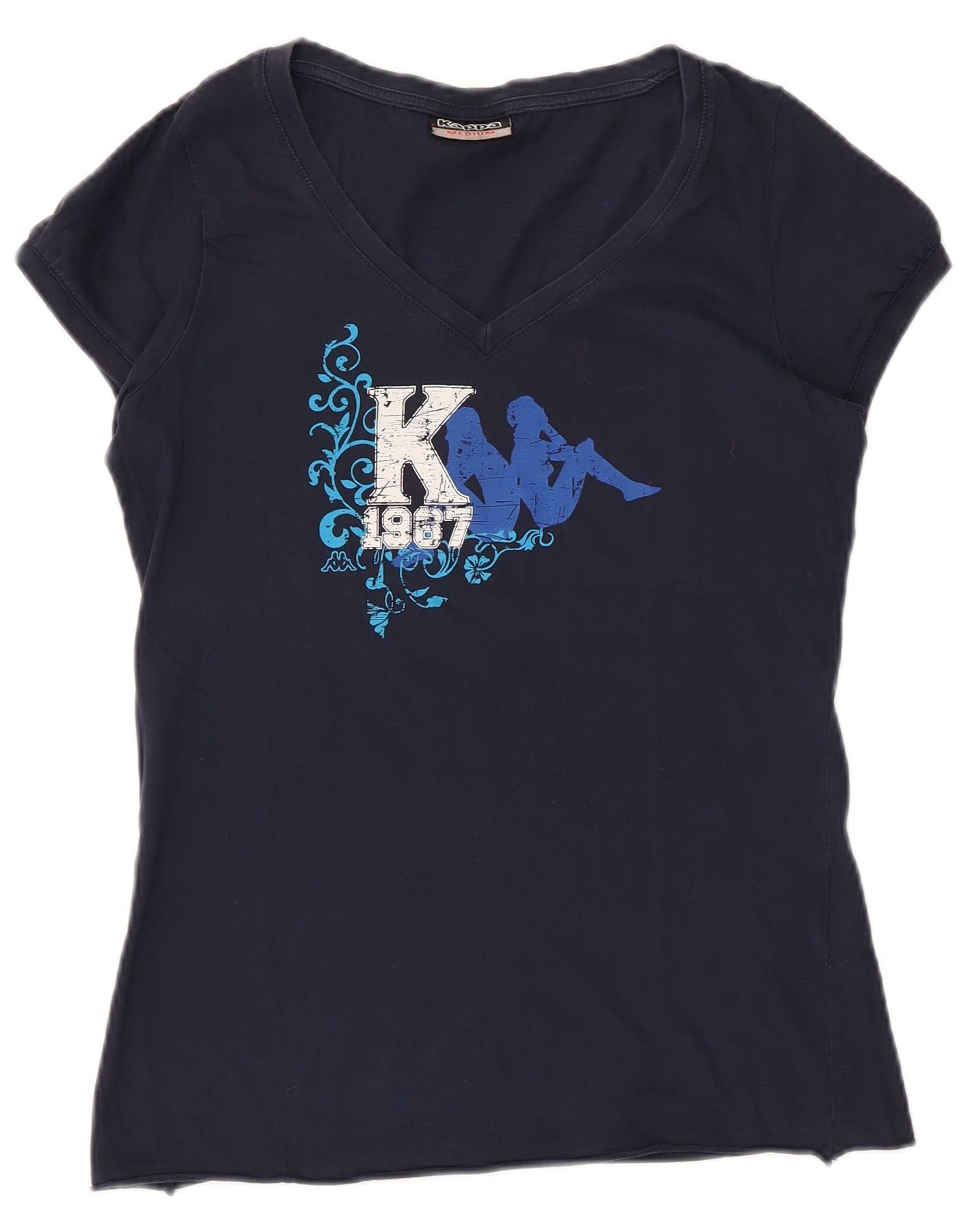 KAPPA Womens Graphic T-Shirt Top UK 12 Medium Navy Blue Cotton