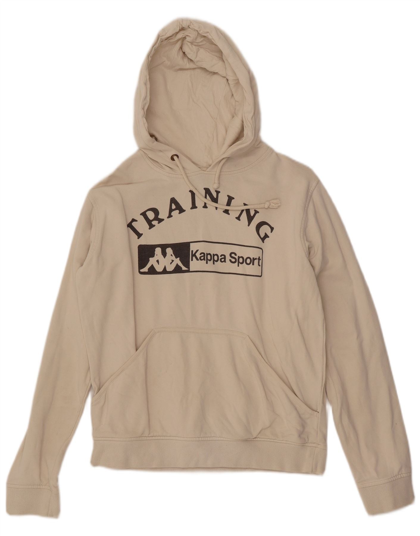 KAPPA Womens Training Graphic Hoodie Jumper UK 14 Medium Off White Cotton