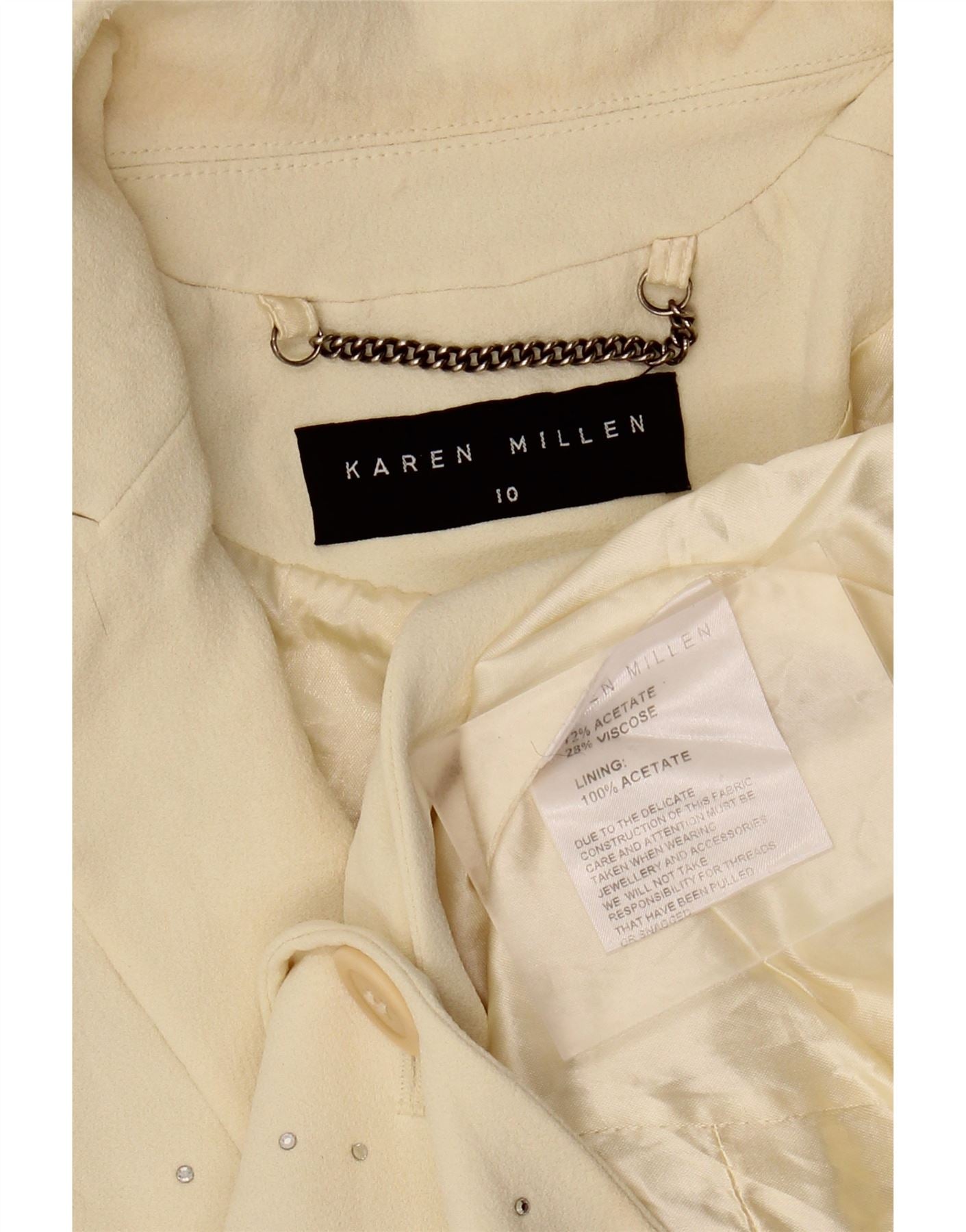 KAREN MILLEN Womens 1 Button Blazer Jacket UK 10 Small Beige Acetate