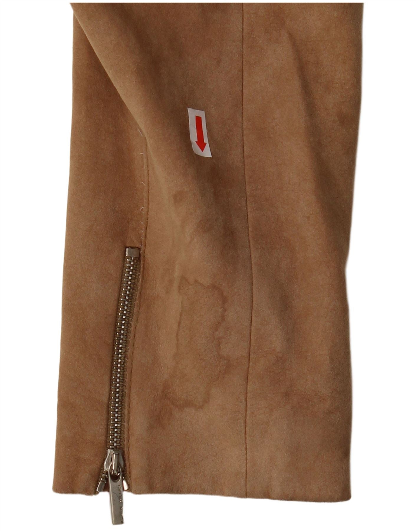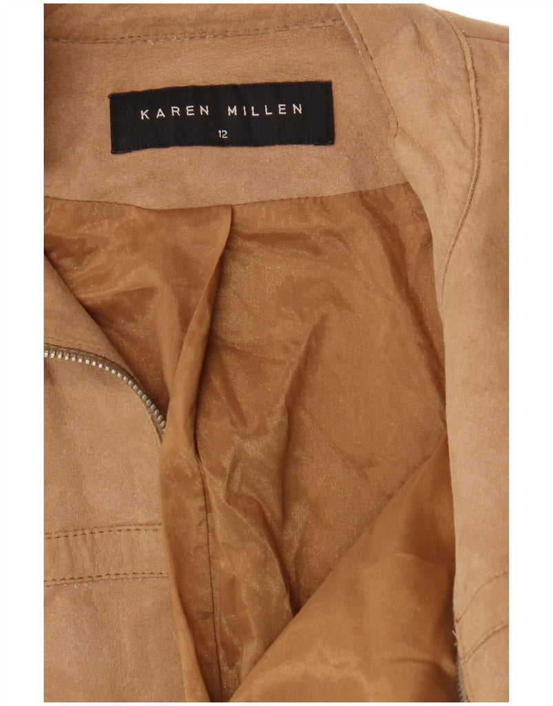 KAREN MILLEN Womens Crop Suede Jacket UK 12 Medium Brown