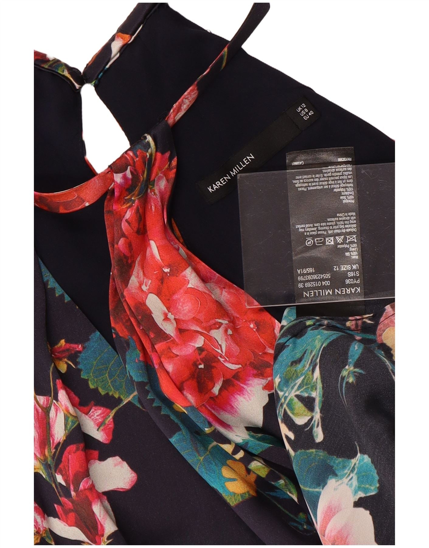 KAREN MILLEN Womens Halter Dress UK 12 Medium Navy Blue Floral Silk
