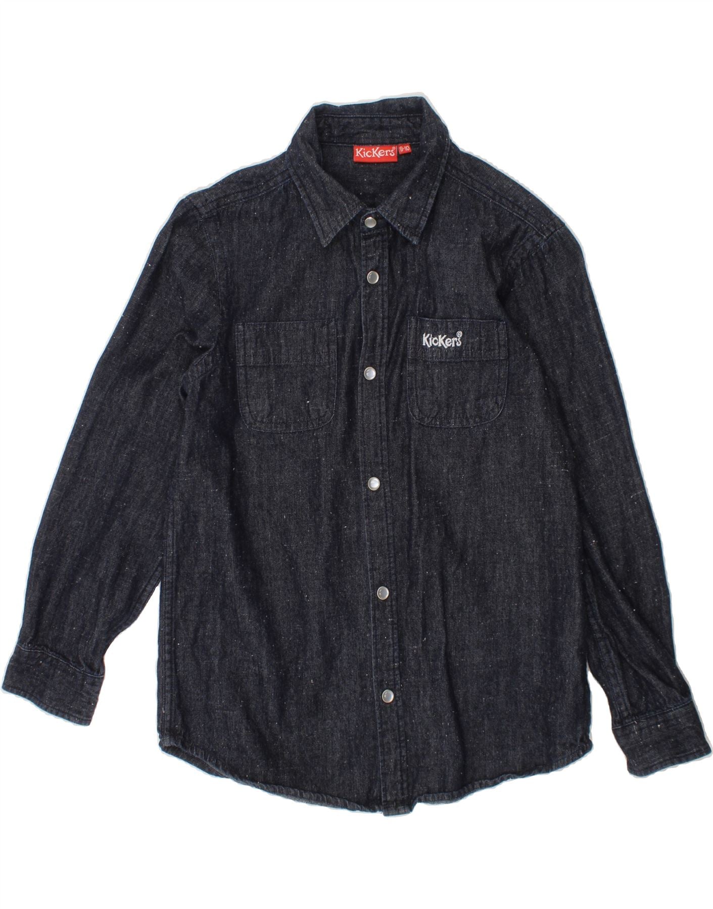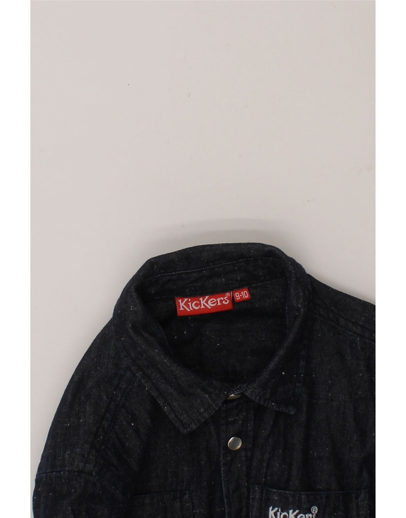 KICKERS Boys Denim Shirt 9-10 Years Navy Blue Flecked Cotton