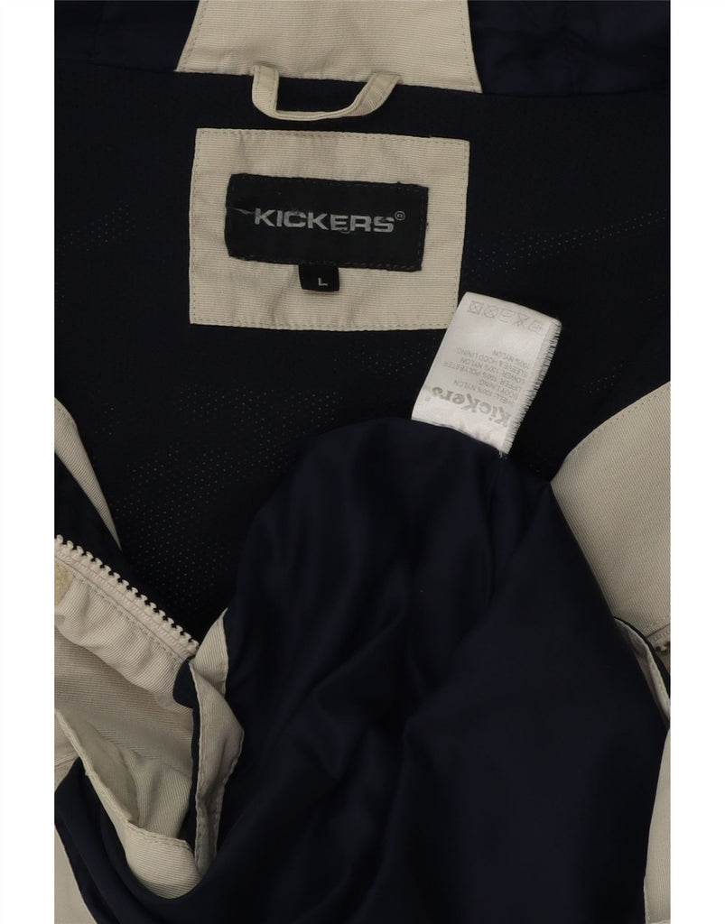 KICKERS Mens Hooded Windbreaker Jacket UK 40 Large Beige Colourblock Nylon