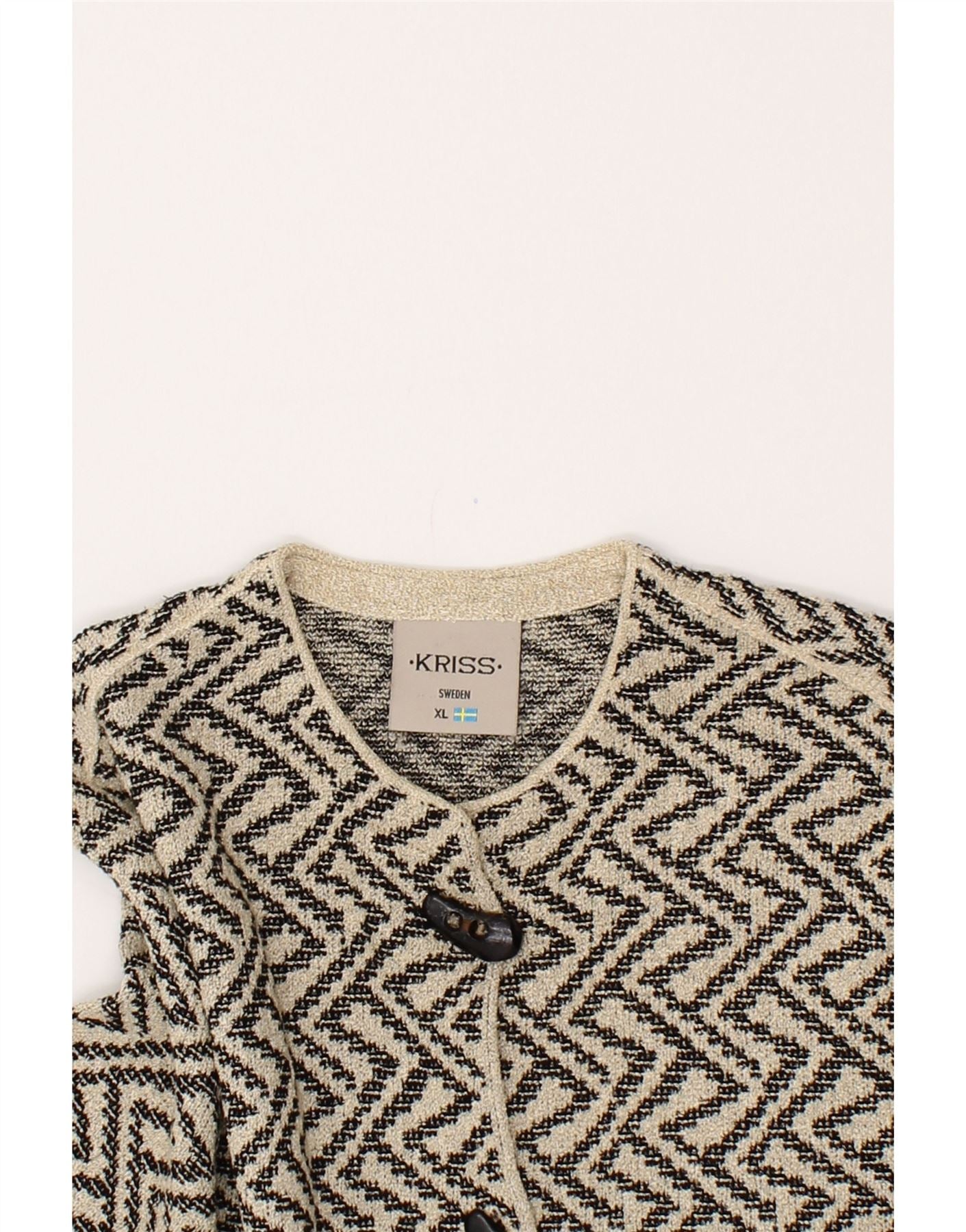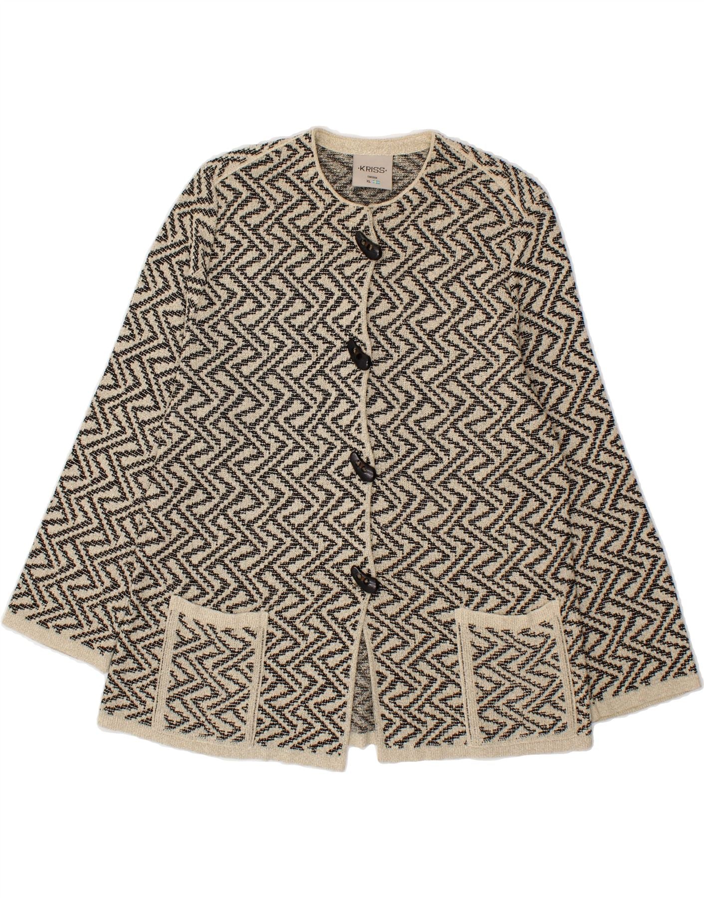 KRISS SWEDEN Womens Cardigan Sweater UK 18 XL Beige Chevron