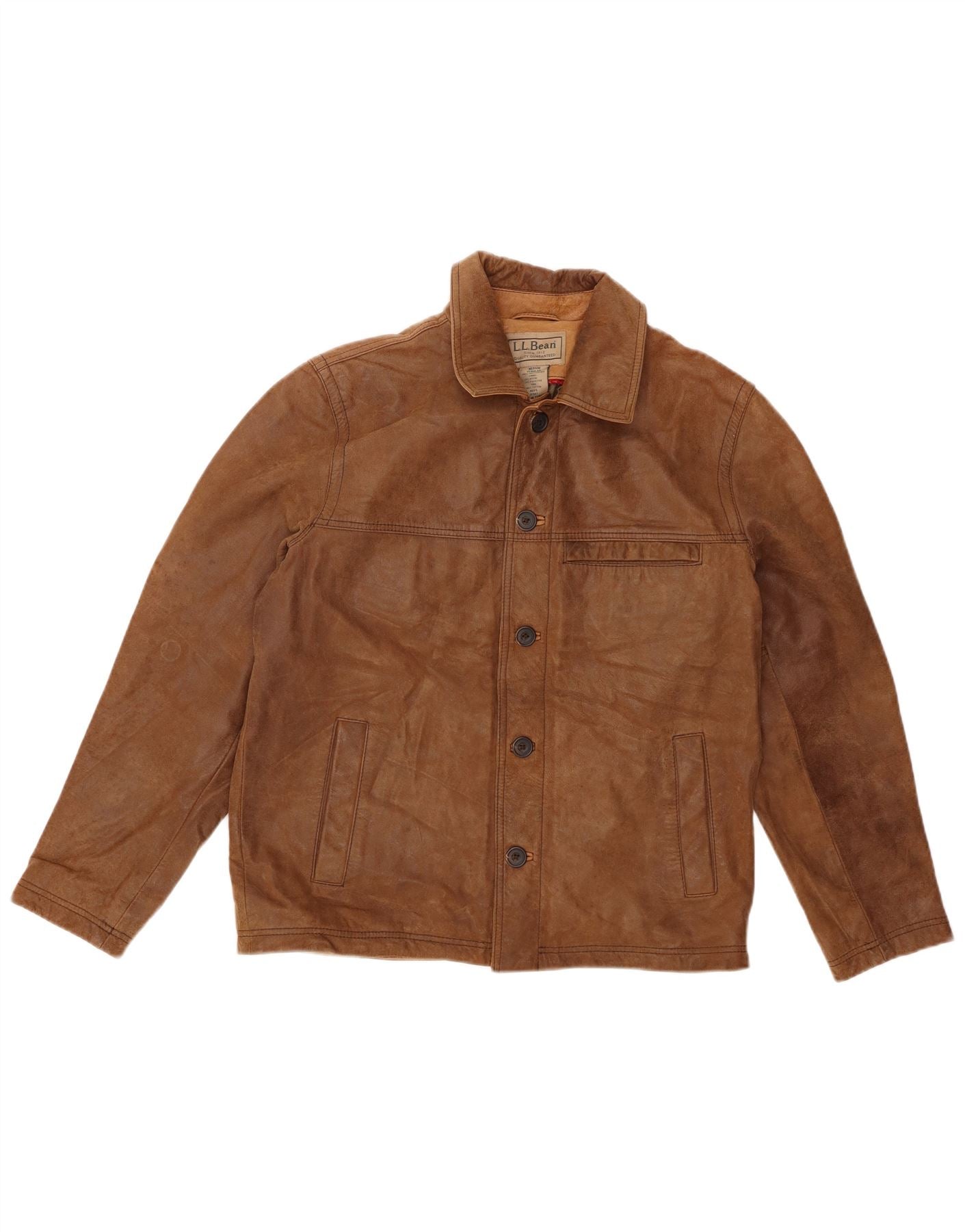 L.L.BEAN Mens Regular Fit Leather Jacket UK 38 Medium Brown Leather