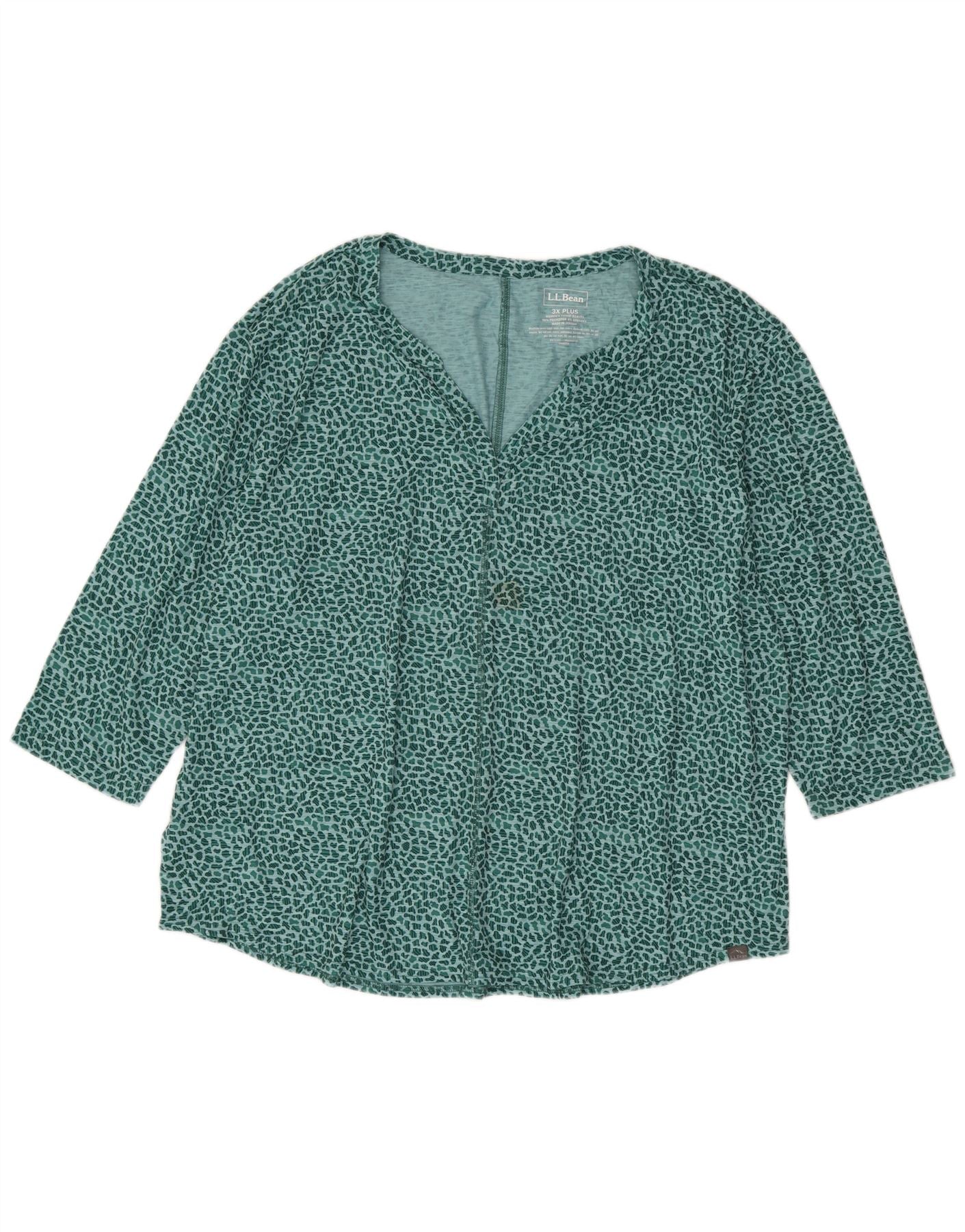 L.L.BEAN Womens 3/4 Sleeve Blouse Top UK 22 3XL Green Animal Print