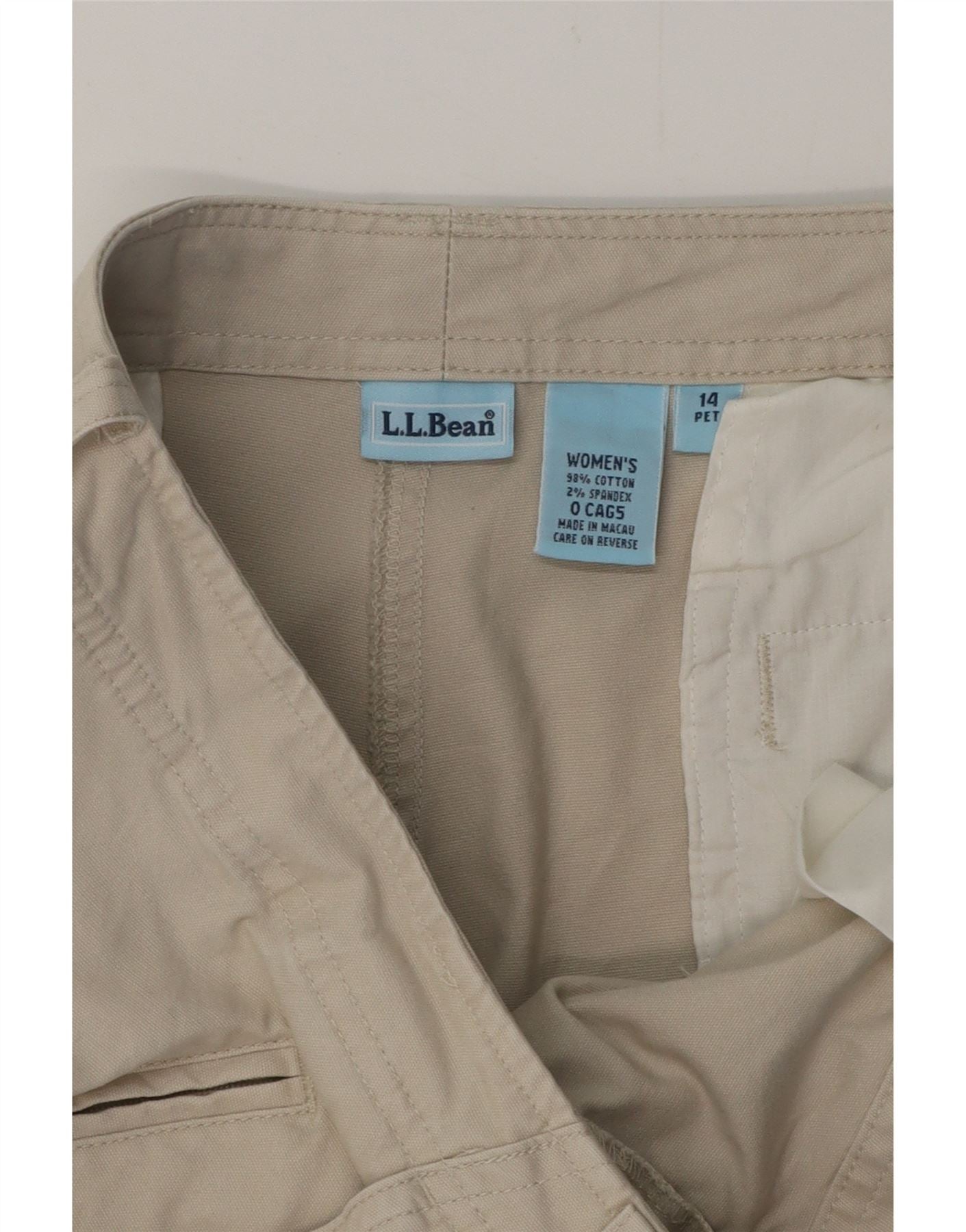 L.L.BEAN Womens Petite Straight Cargo Trousers US 14 XL W34 L28 Beige