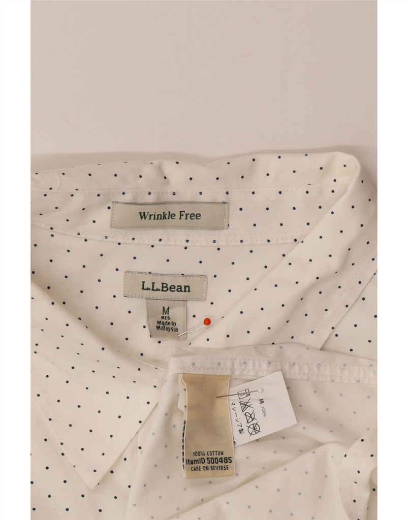 L.L.BEAN Womens Shirt UK 14 Medium White Polka Dot Cotton