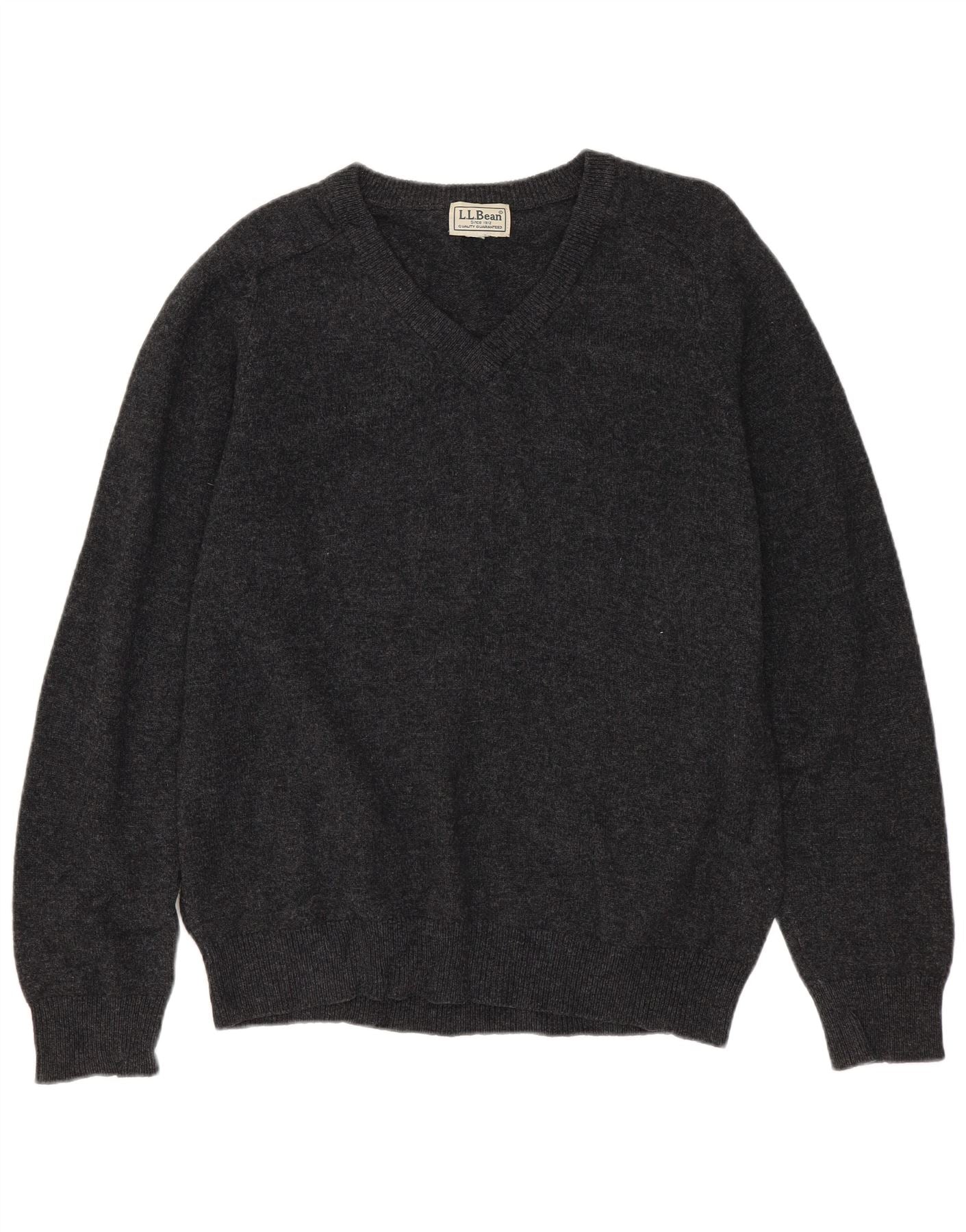 L.L.BEAN Womens V-Neck Jumper Sweater UK 16 Large Grey Wool