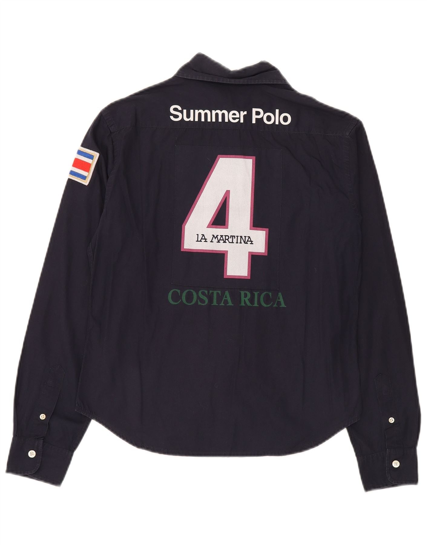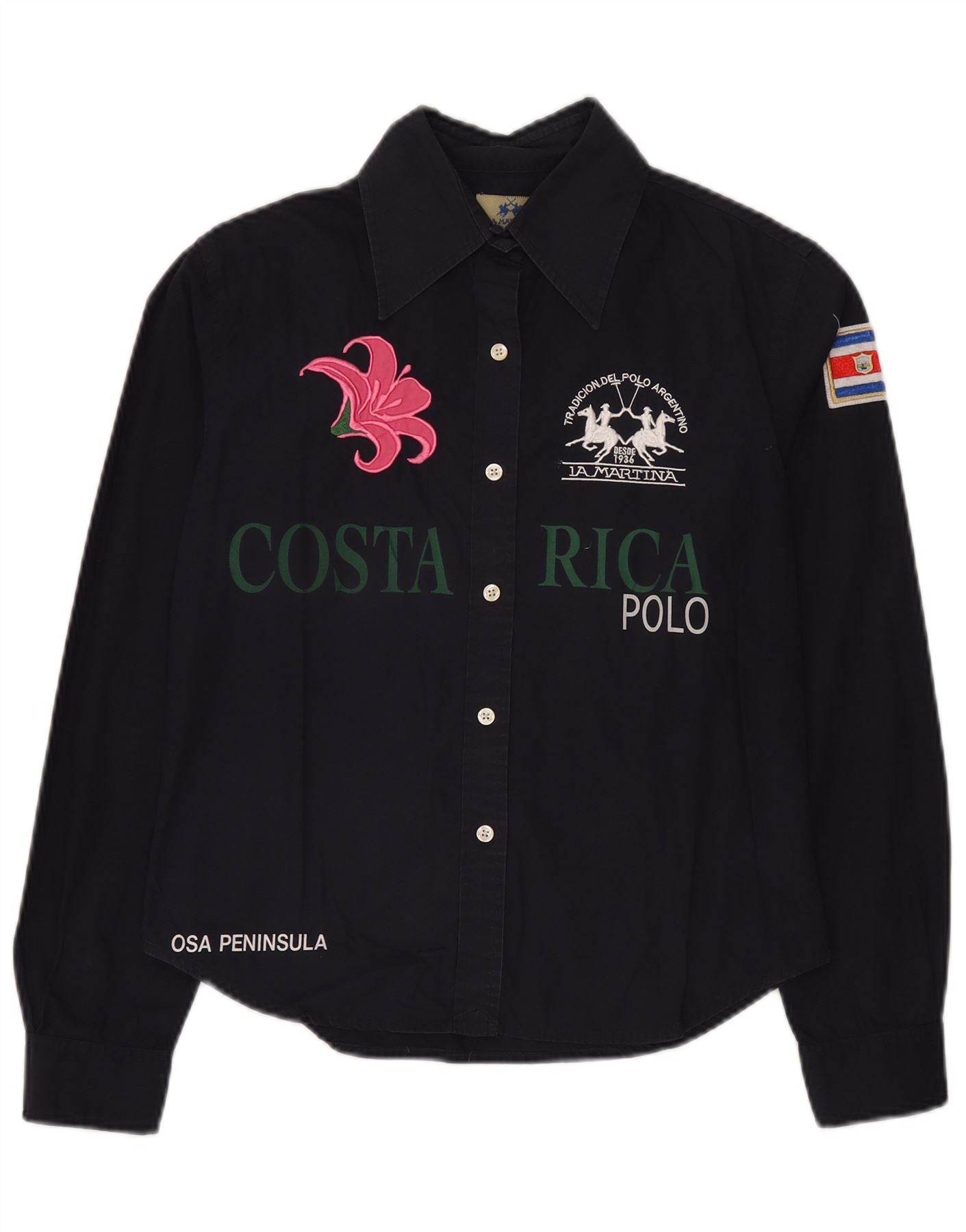 LA MARTINA Womens Graphic Shirt UK 16 Large Navy Blue Cotton