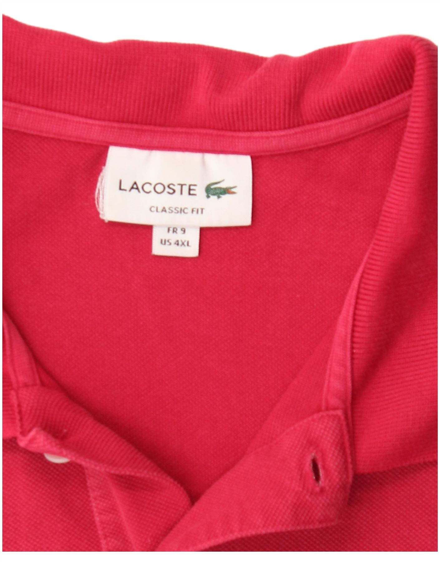 LACOSTE Mens Classic Fit Polo Shirt Size 9 4XL Pink Cotton