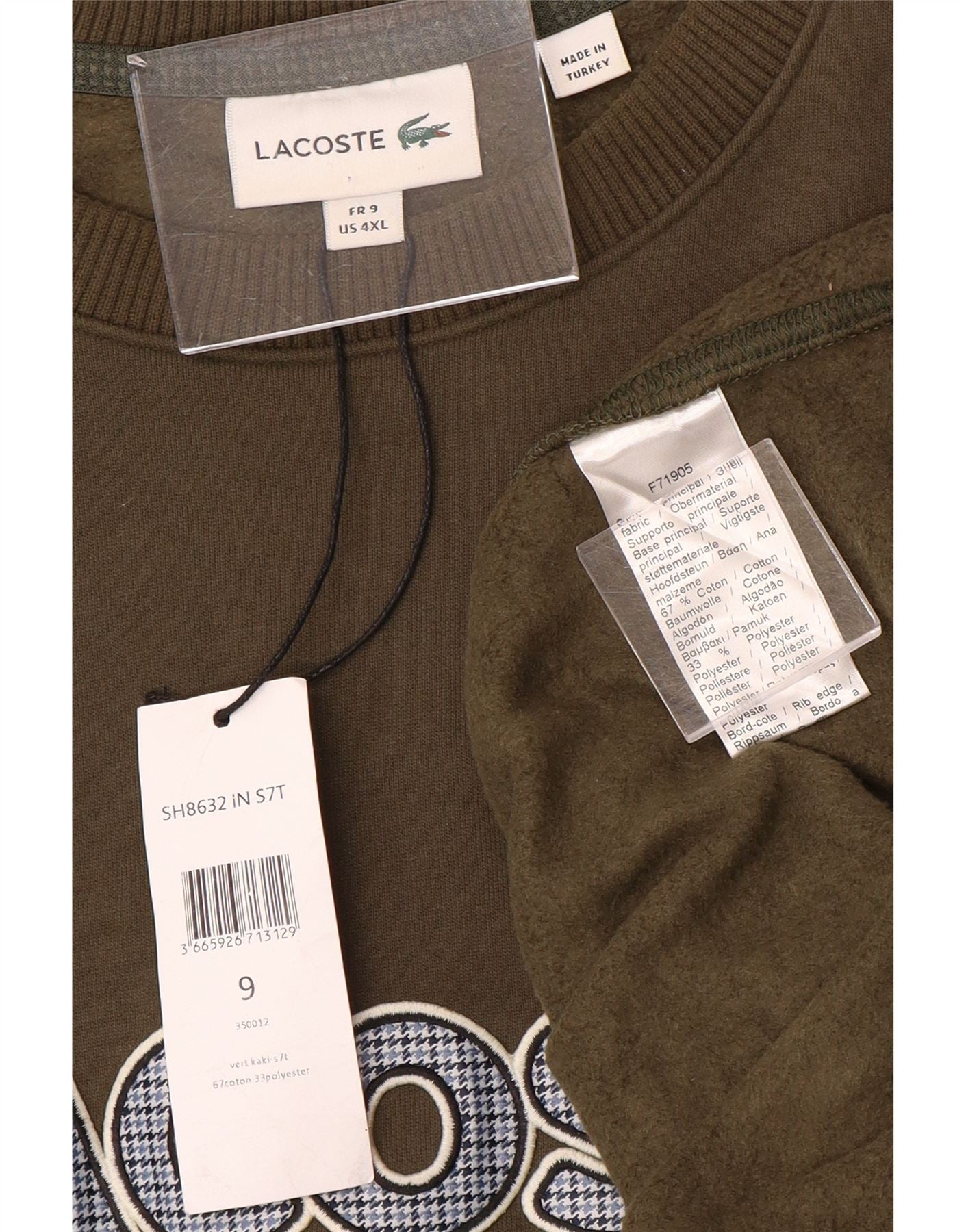 - AI Description: This Lacoste mens sweatshirt jumper is crafted from a comfortable khaki cotton blend fabric. It features a classic round neck and long sleeves. The regular fit ensures ease of movement. Cuffed sleeves and hem provide a neat finish. A distinctive logo accent adds a signature touch to this versatile pullover.