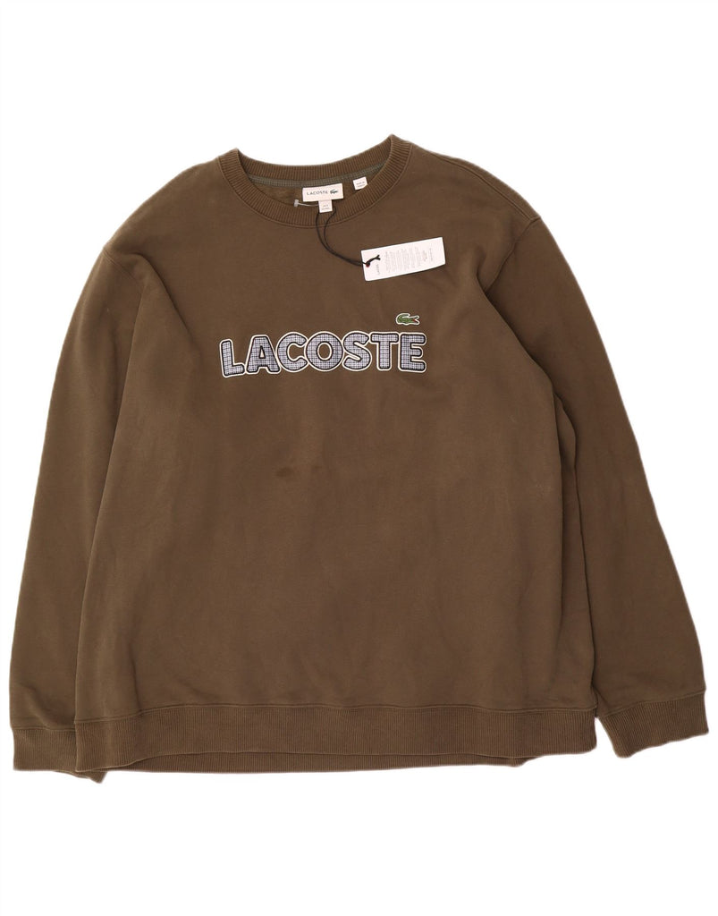 LACOSTE Mens Graphic Sweatshirt Jumper Size 9 4XL Khaki Cotton