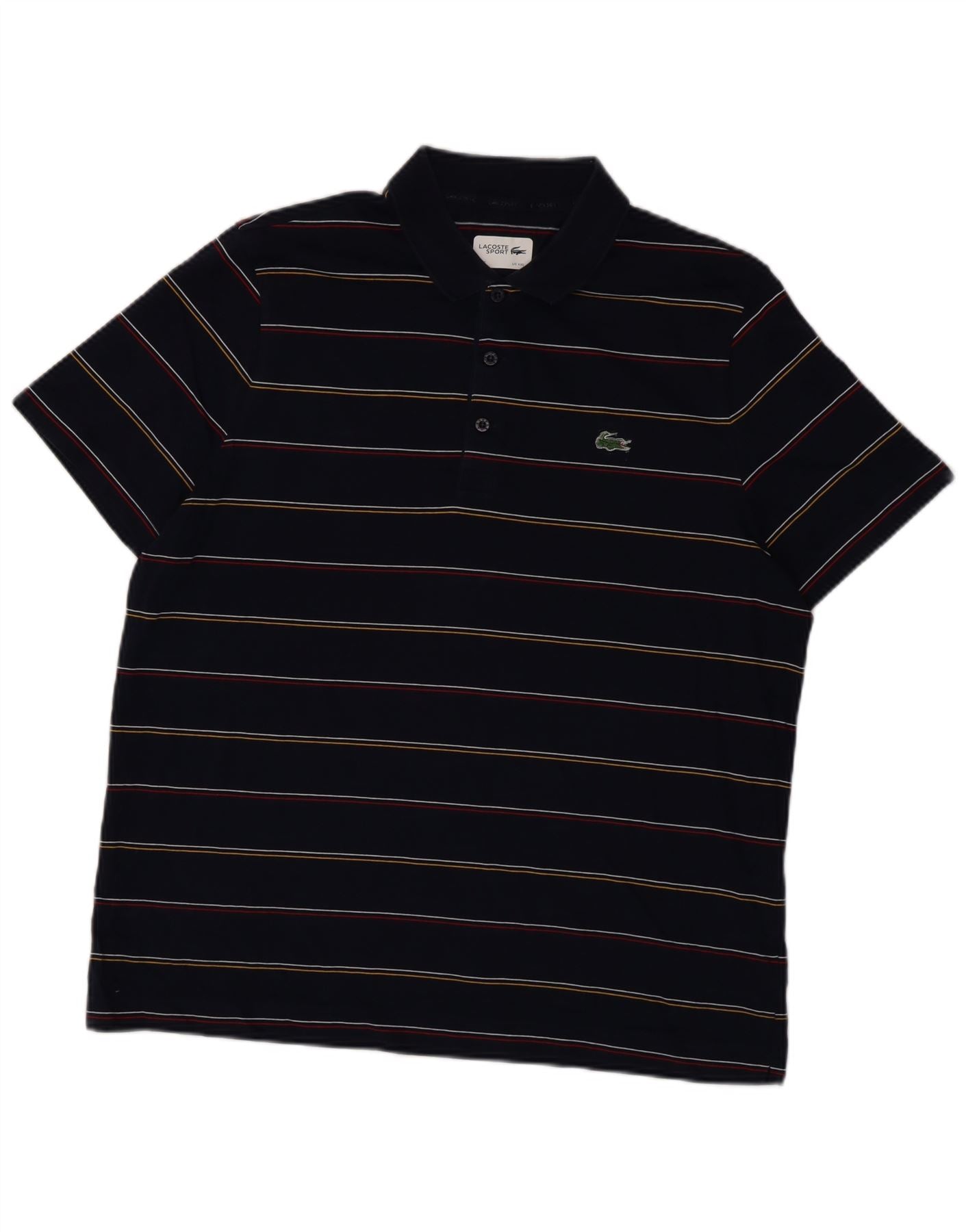 LACOSTE Mens Polo Shirt Size 7 2XL Navy Blue Striped Cotton